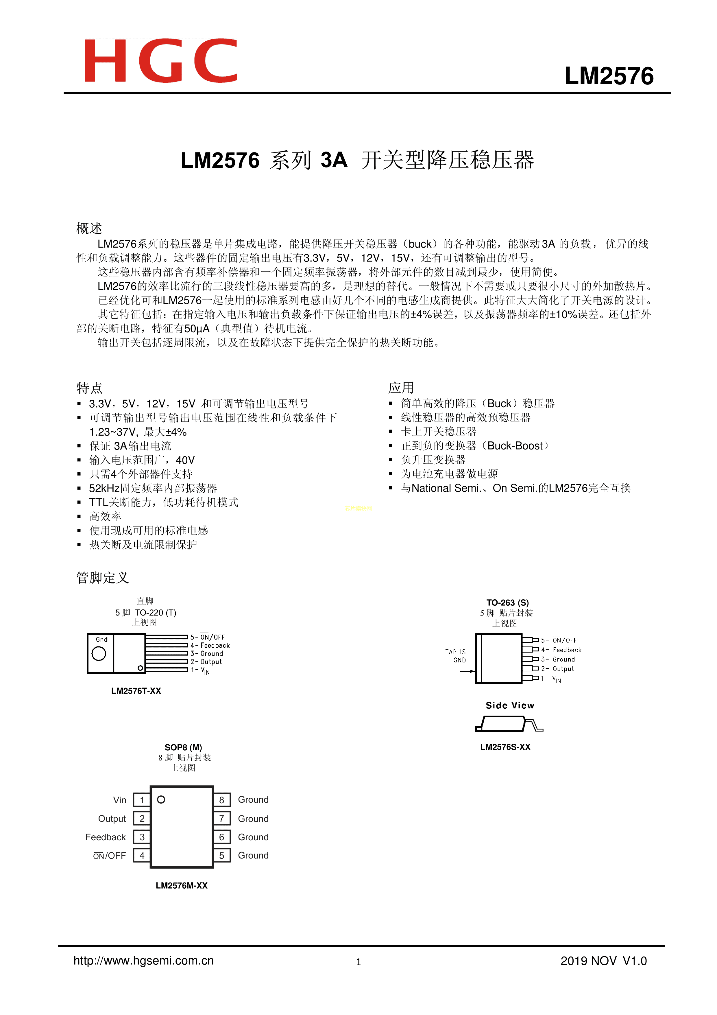 LM2576T-ADJ数据手册TO-220-5L封装HGC(华冠)PDF规格书,中英文下载