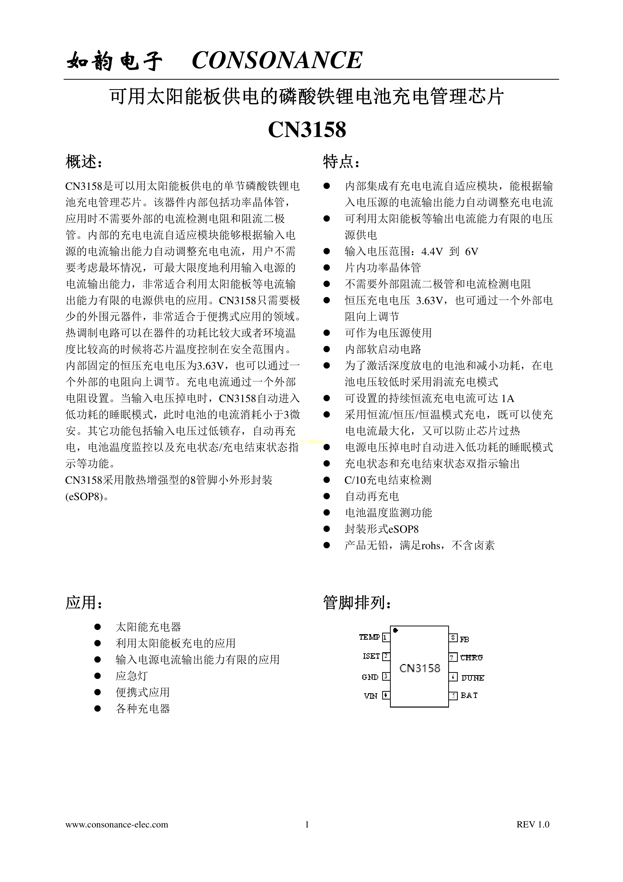 磷酸铁锂电池充电芯片CN3158PDF规格书,中英文下载