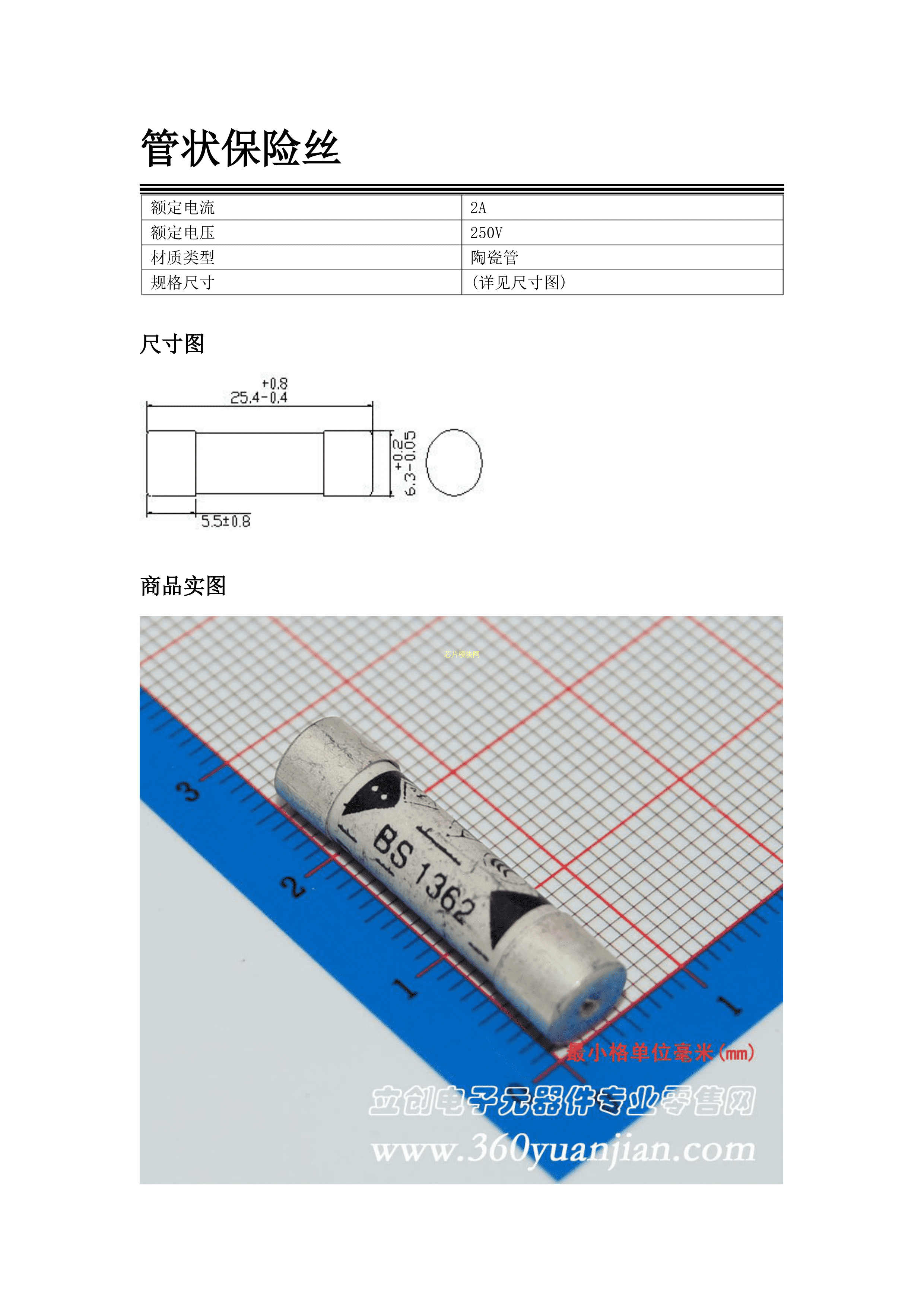 陶瓷保险丝 2A 250V数据手册管3x25.4mm封装xcfuse(旭程)PDF规格书,中英文下载