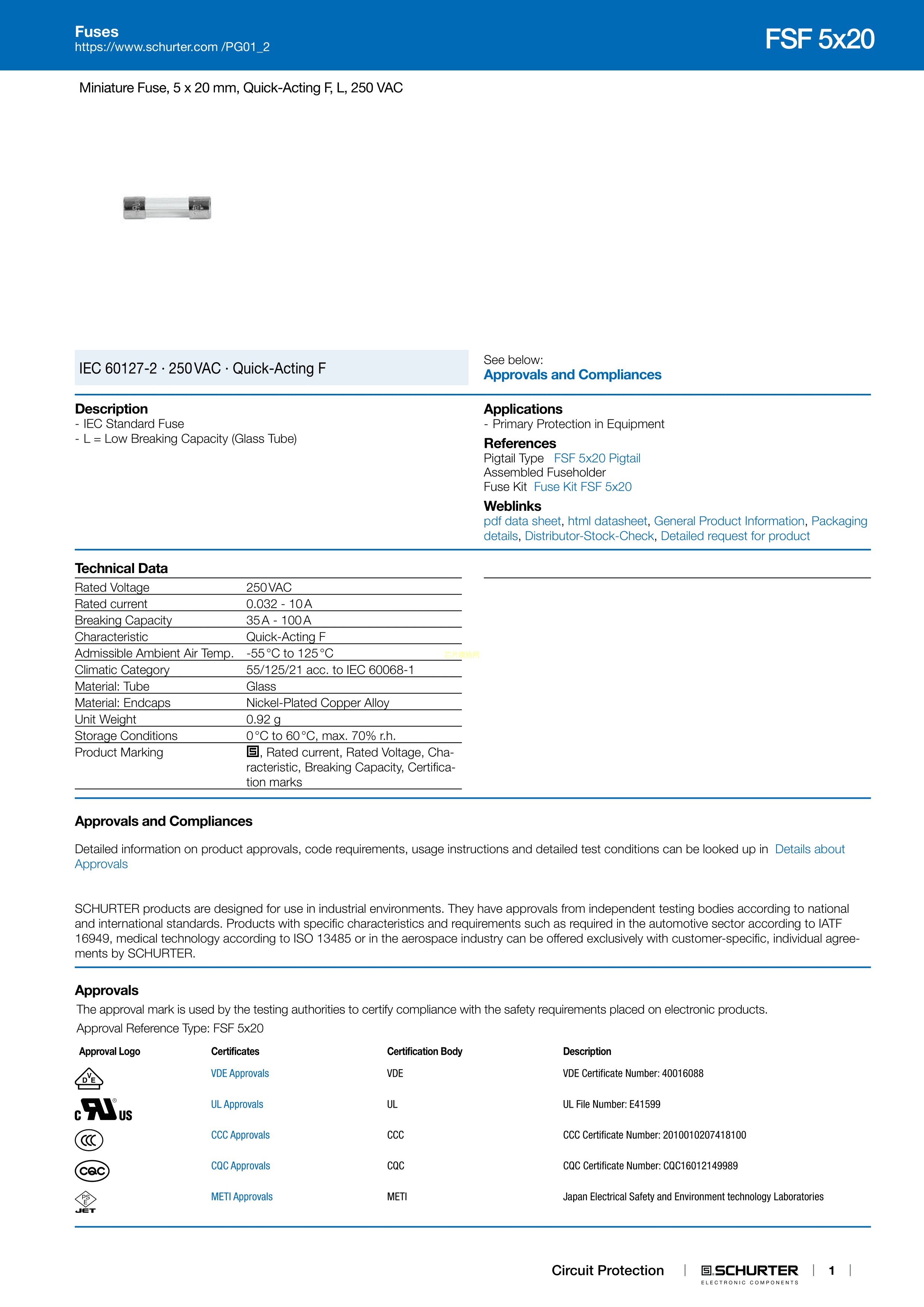 0034.1516数据手册管5.2x20mm封装SCHURTERPDF规格书,中英文下载