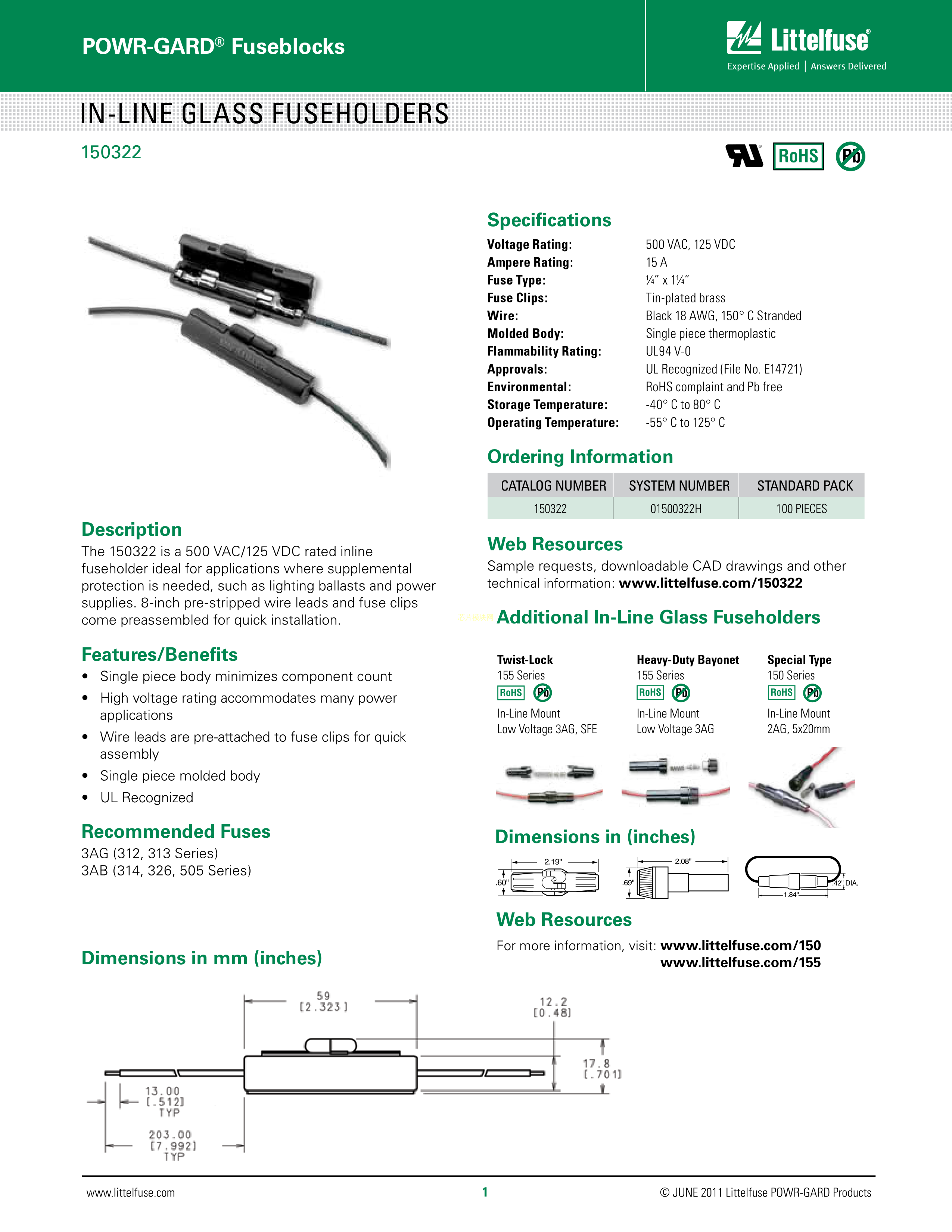 01500322H数据手册-封装Littelfuse(美国力特)PDF规格书,中英文下载