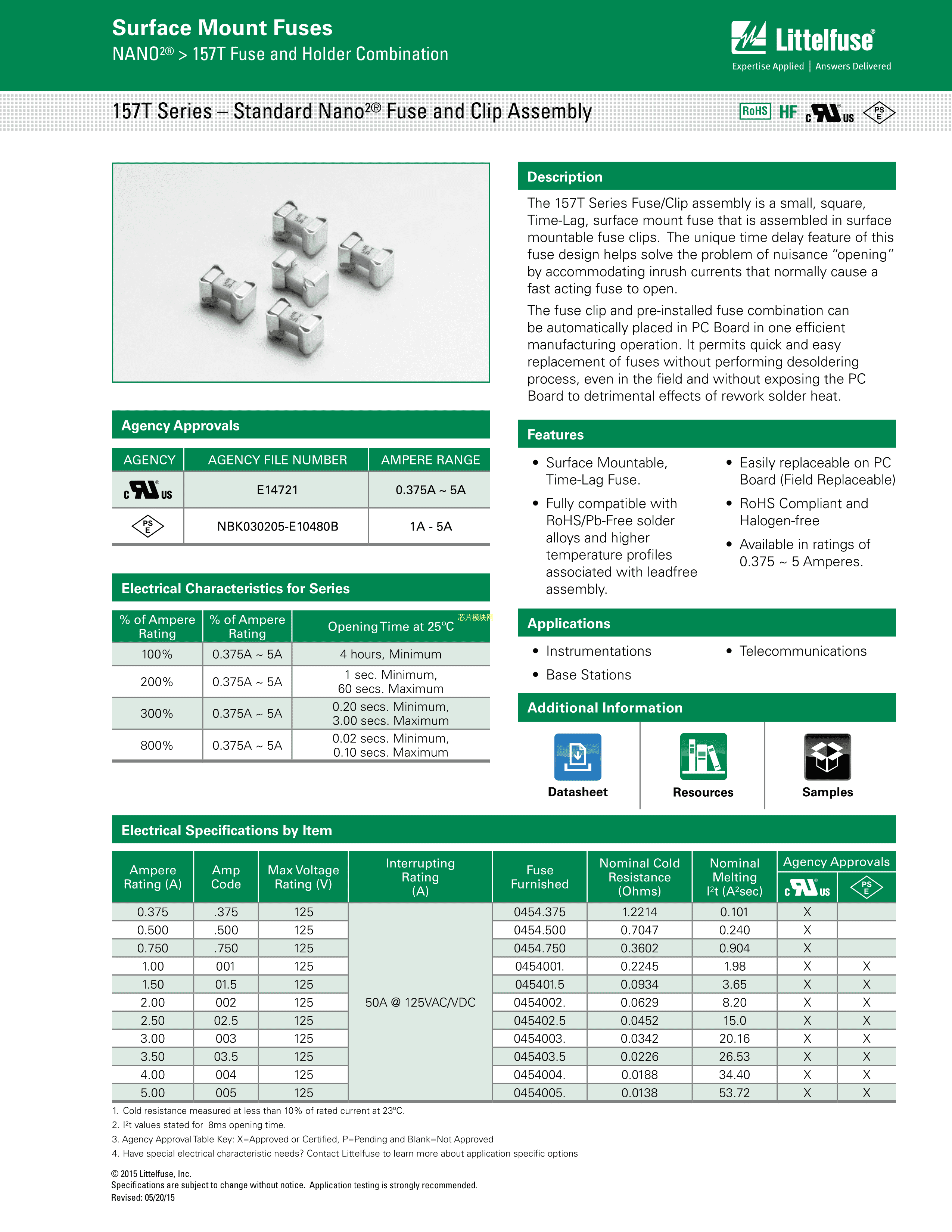 0157005.DRT数据手册SMD封装Littelfuse(美国力特)PDF规格书,中英文下载