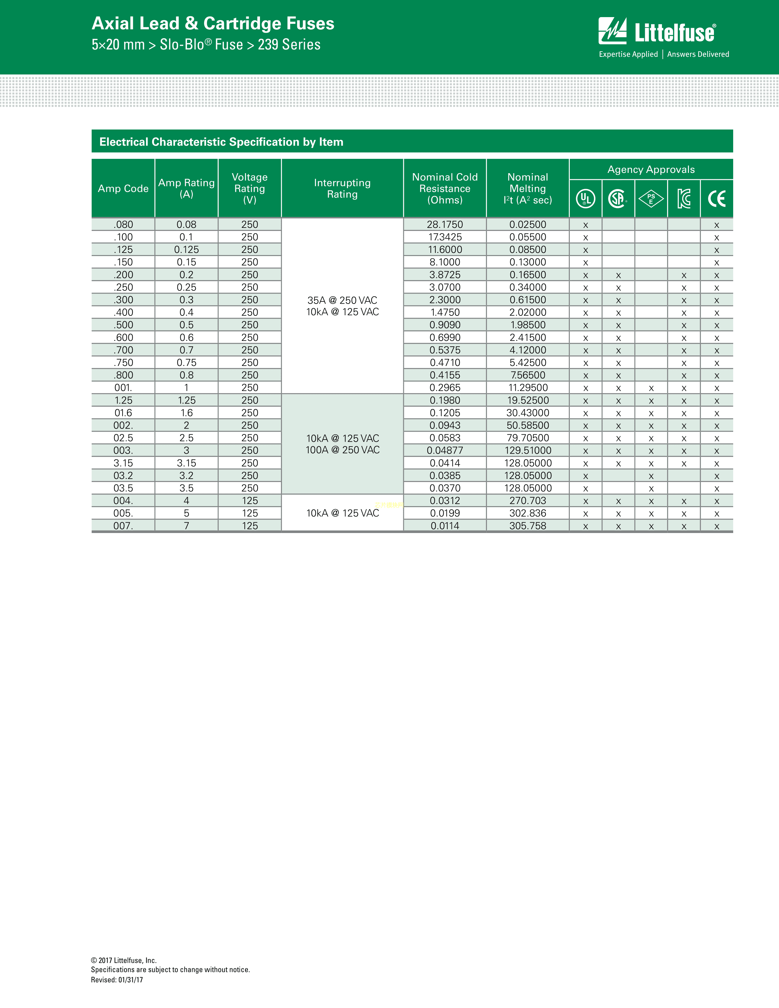 0239004.MXP数据手册管5.2x20mm封装Littelfuse(美国力特)PDF规格书,中