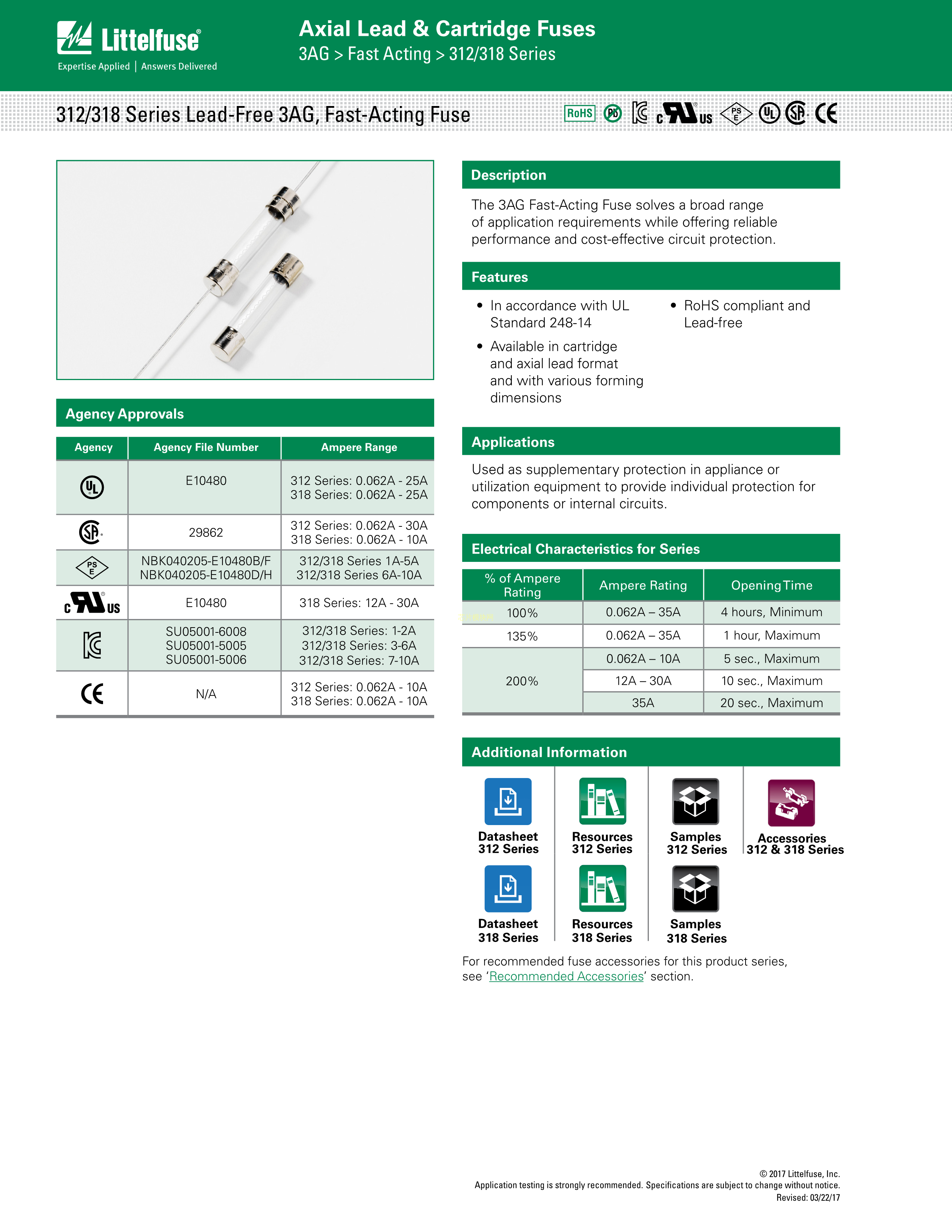 0312003.MXP数据手册管6.35x31.75mm封装Littelfuse(美国力特)PDF规