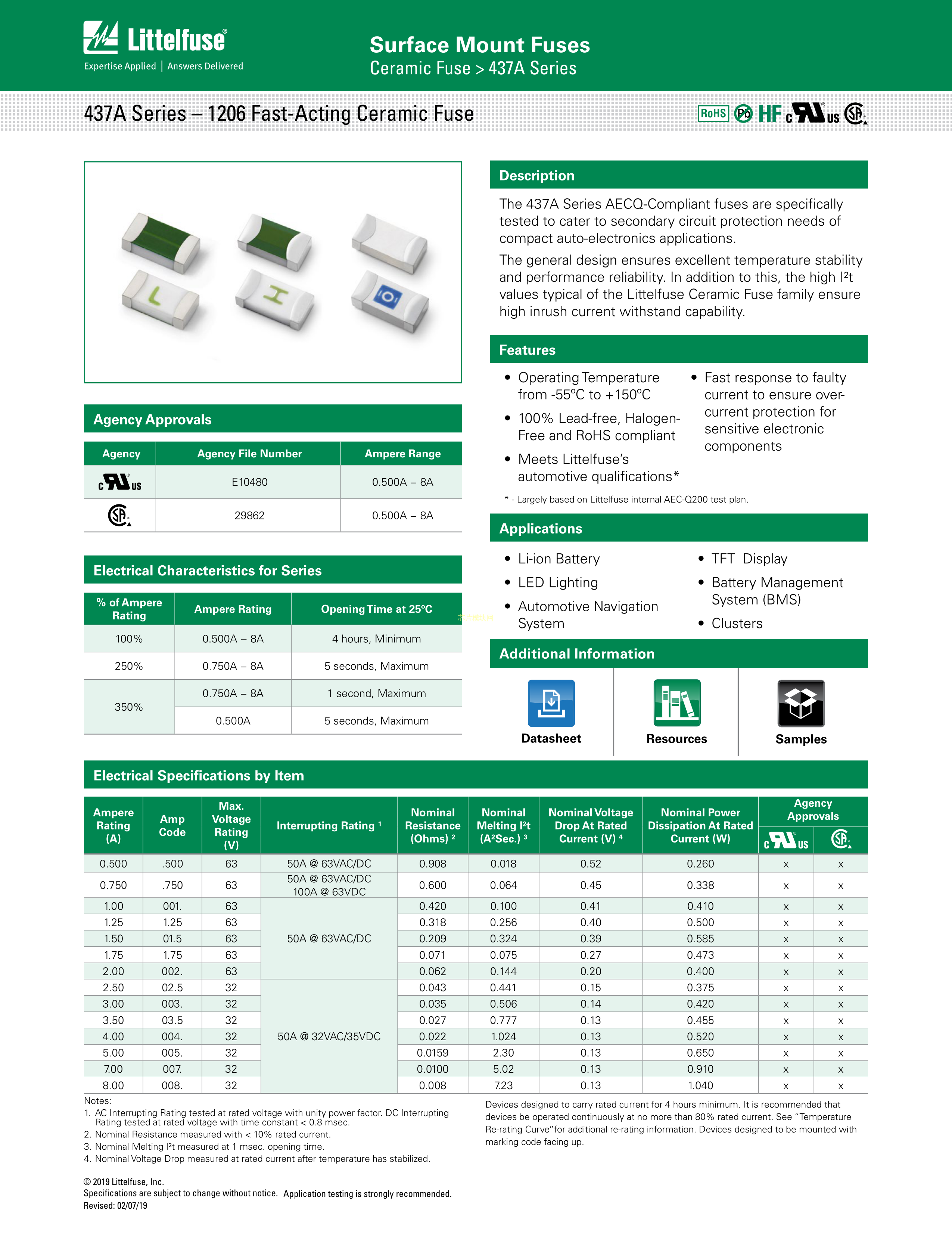 0437002.WRA数据手册1206封装Littelfuse(美国力特)PDF规格书,中英文下载