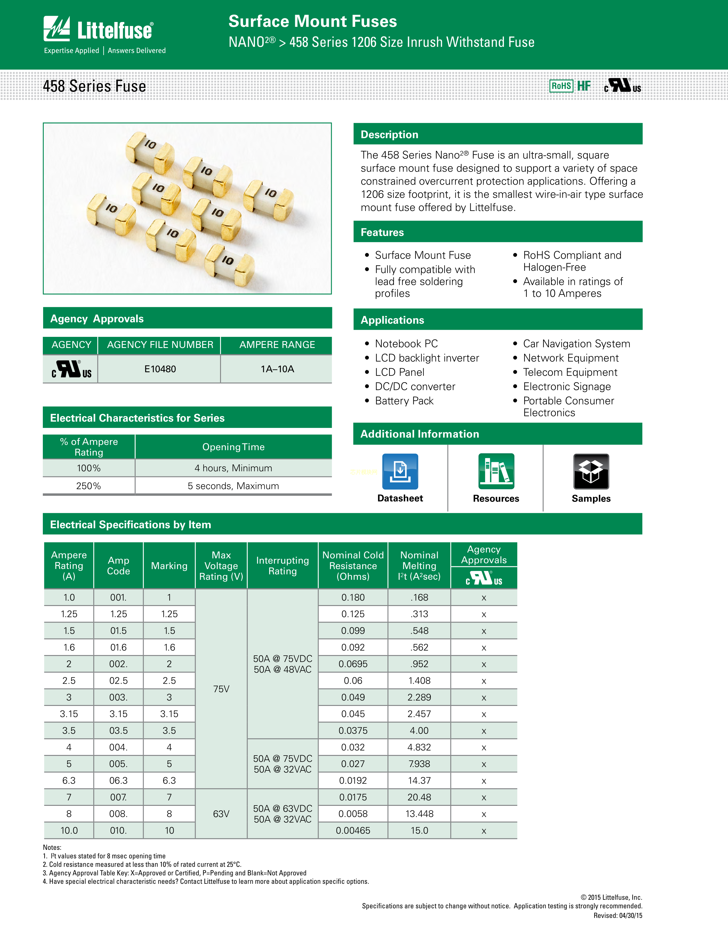 0458010.DR数据手册1206封装Littelfuse(美国力特)PDF规格书,中英文下载