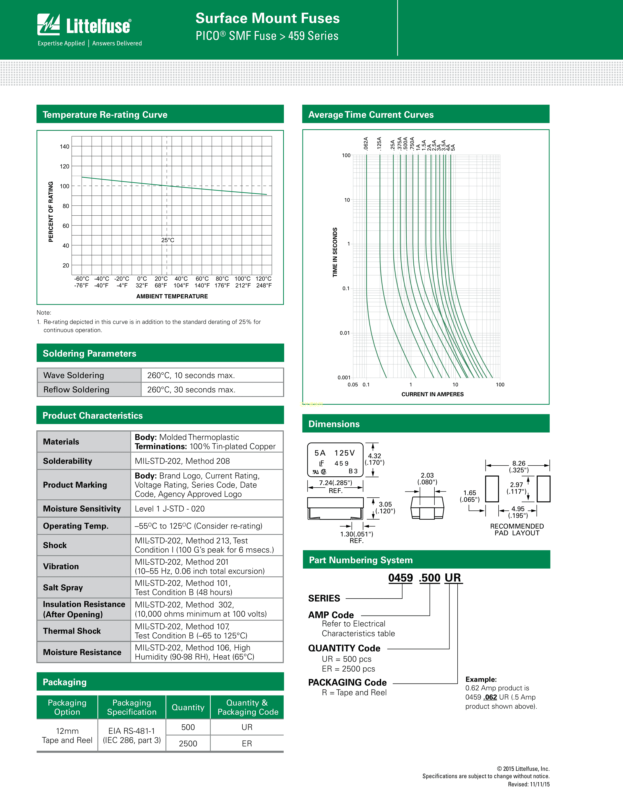 0459.062UR数据手册SMD封装Littelfuse(美国力特)PDF规格书,中英文下载