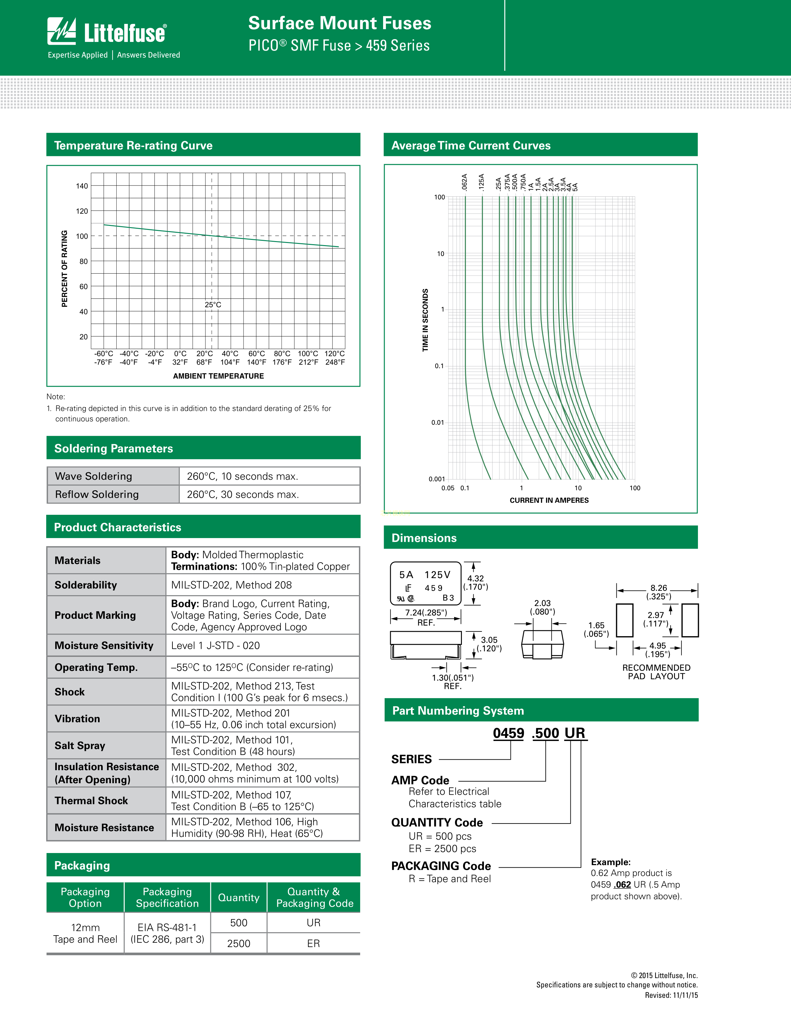0459001.UR数据手册SMD封装Littelfuse(美国力特)PDF规格书,中英文下载