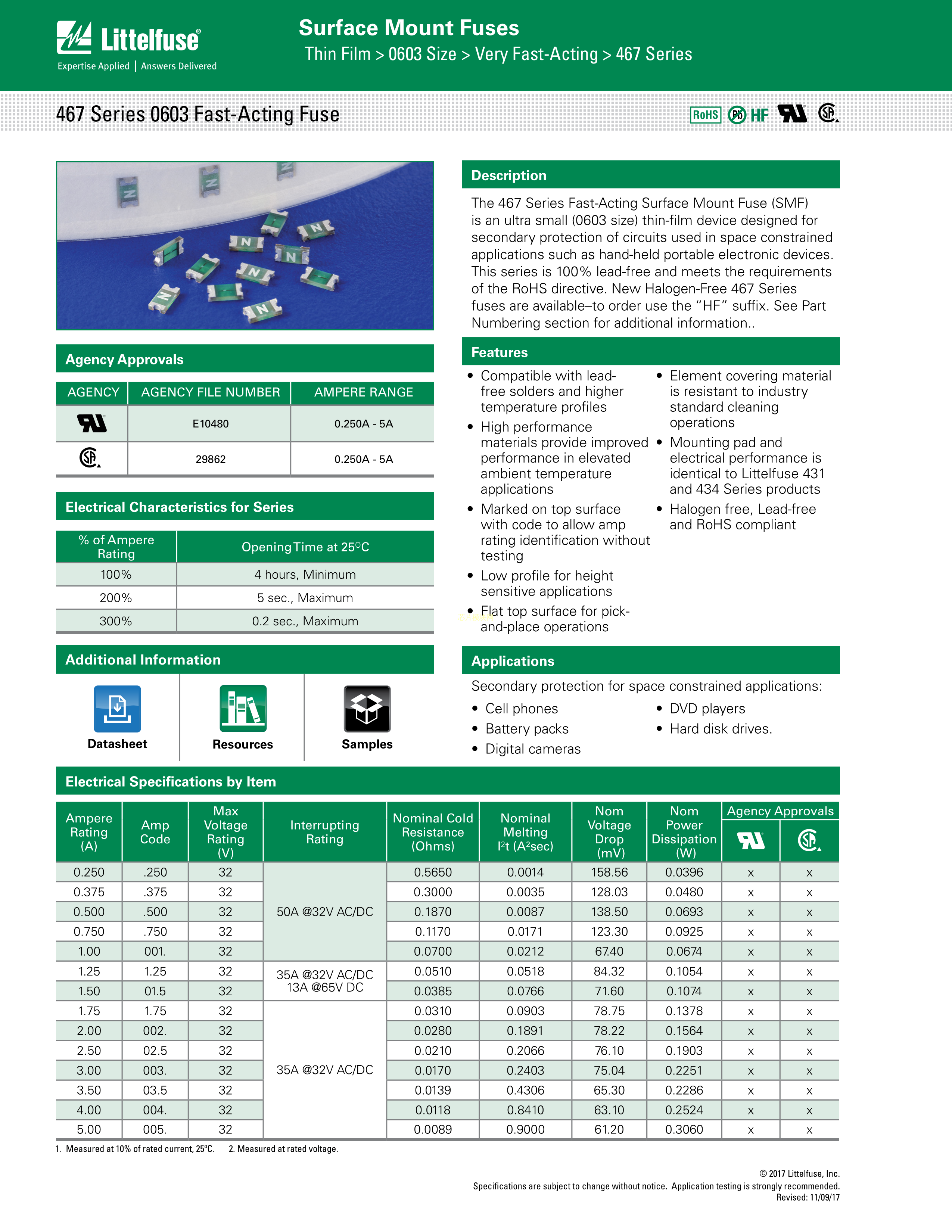 0467002.NR数据手册0603封装Littelfuse(美国力特)PDF规格书,中英文下载