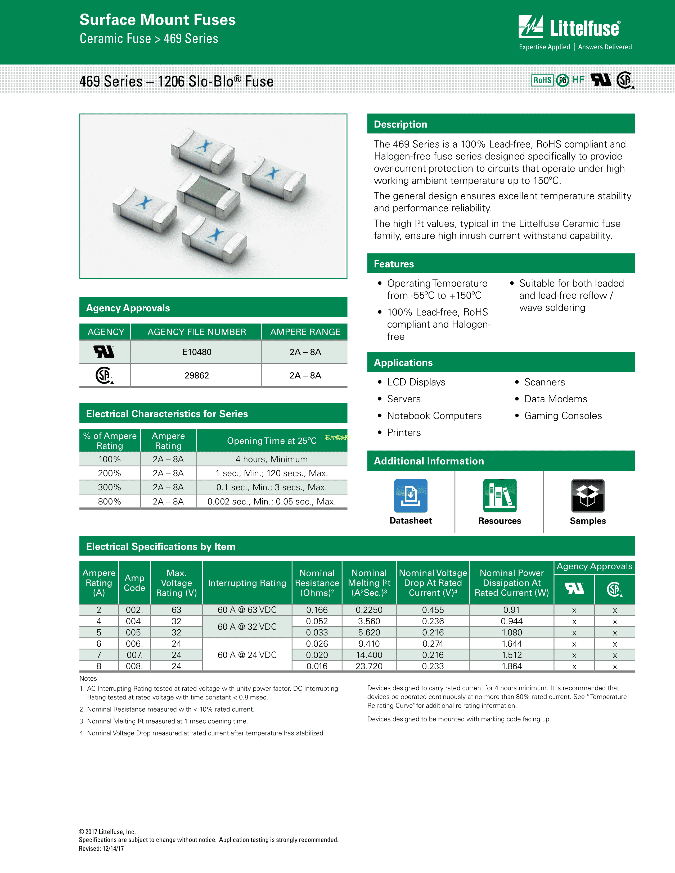 0469007.WR数据手册1206封装Littelfuse(美国力特)PDF规格书,中英文下载