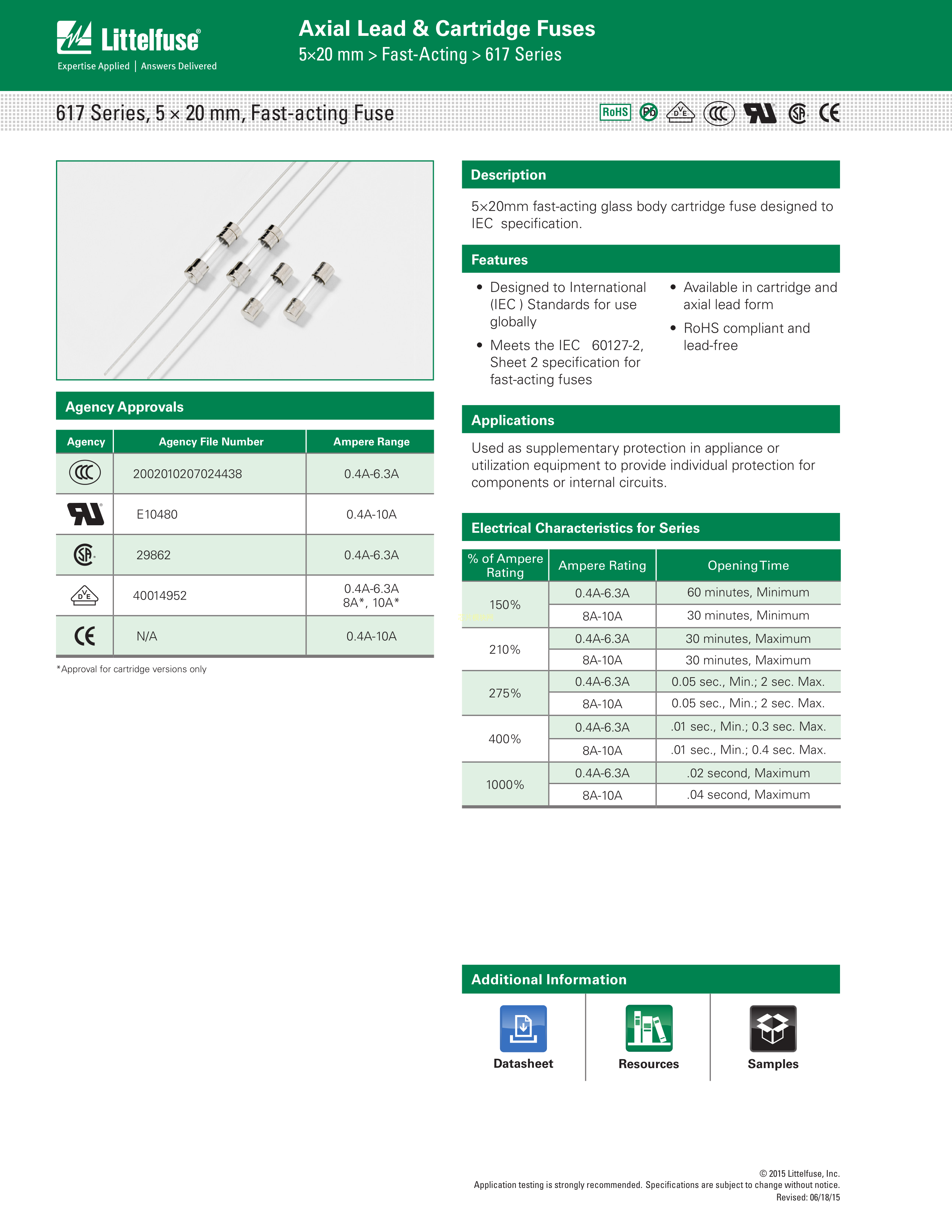 0617010.MXP数据手册管5.2x20mm封装Littelfuse(美国力特)PDF规格书,中