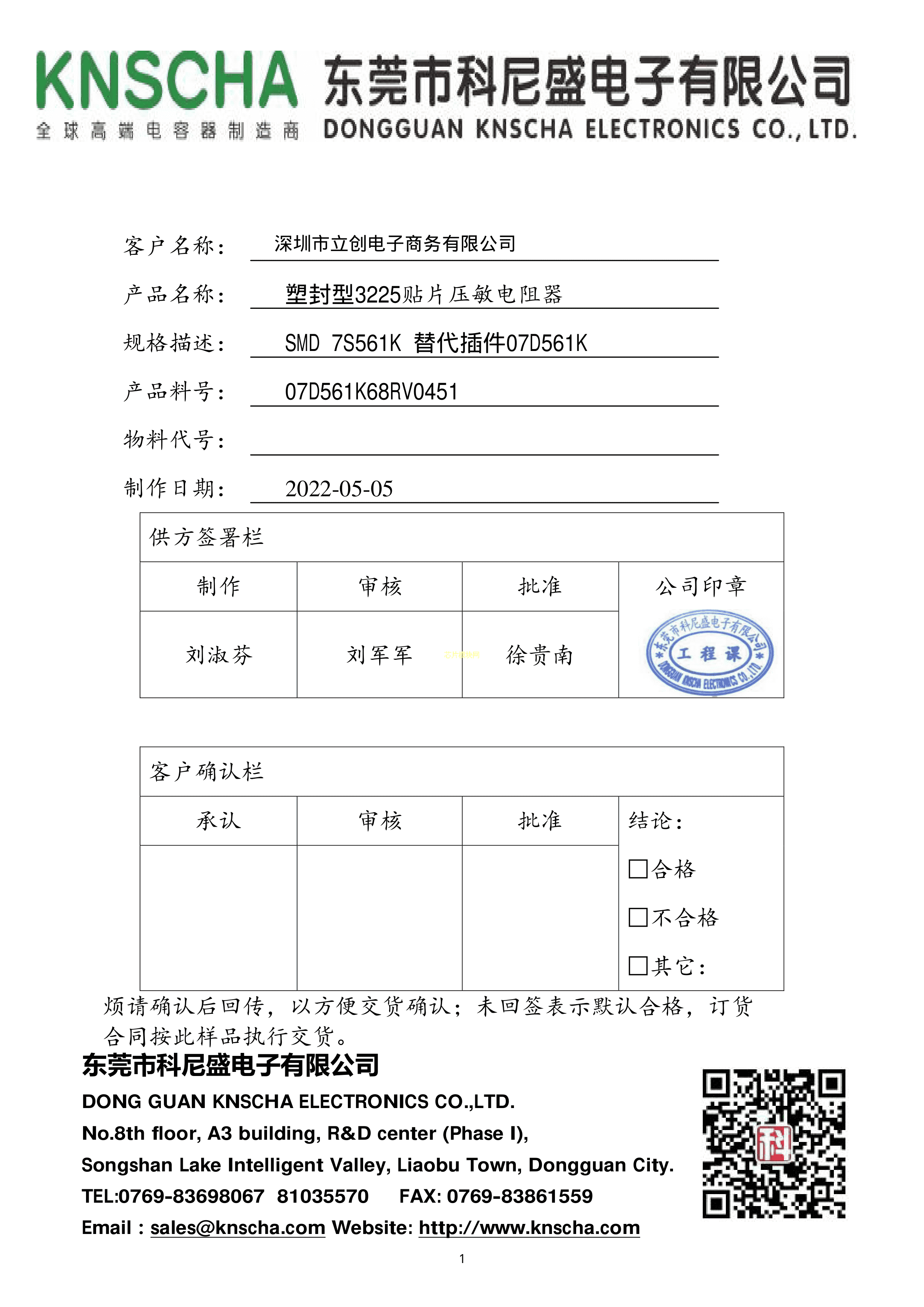 07D561K68RV0451数据手册SMD3225封装KNSCHA(科尼盛)PDF规格书,中英文下载