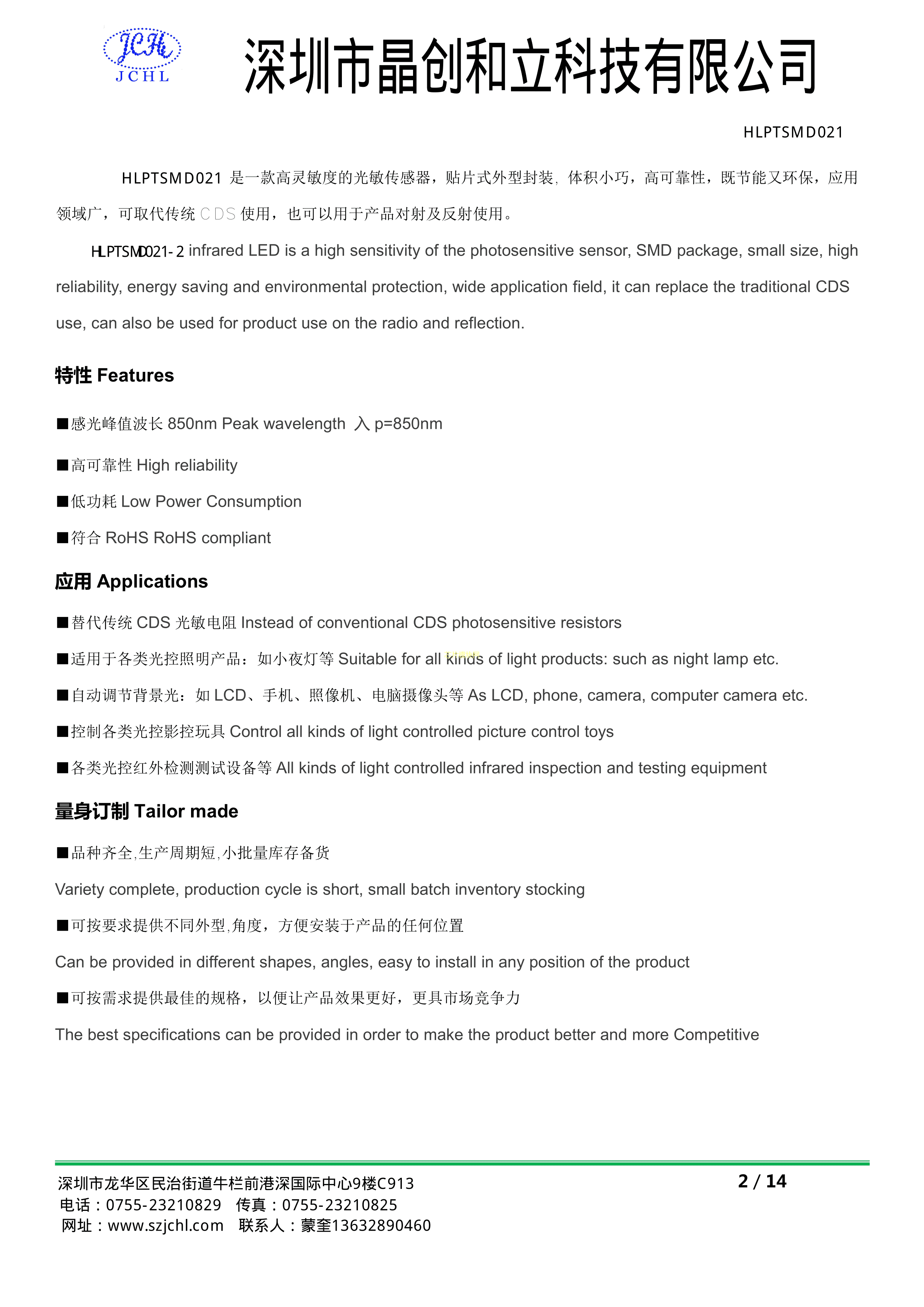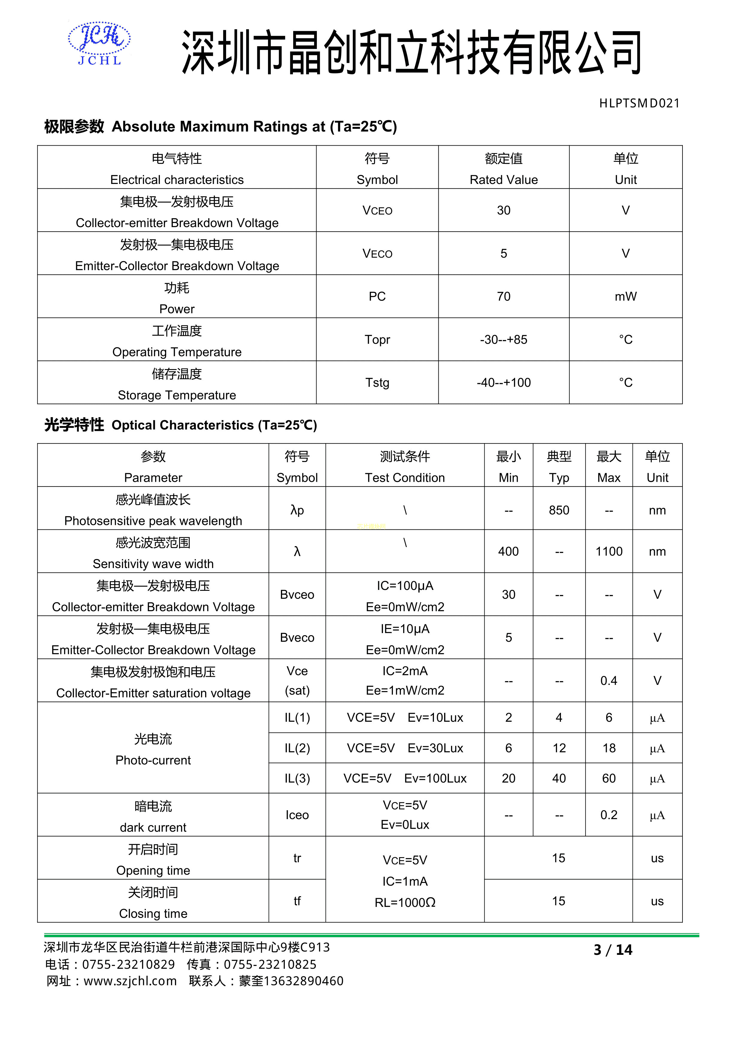 0805-PTSMD021数据手册0805封装JCHL(晶创和立)PDF规格书,中英文下载