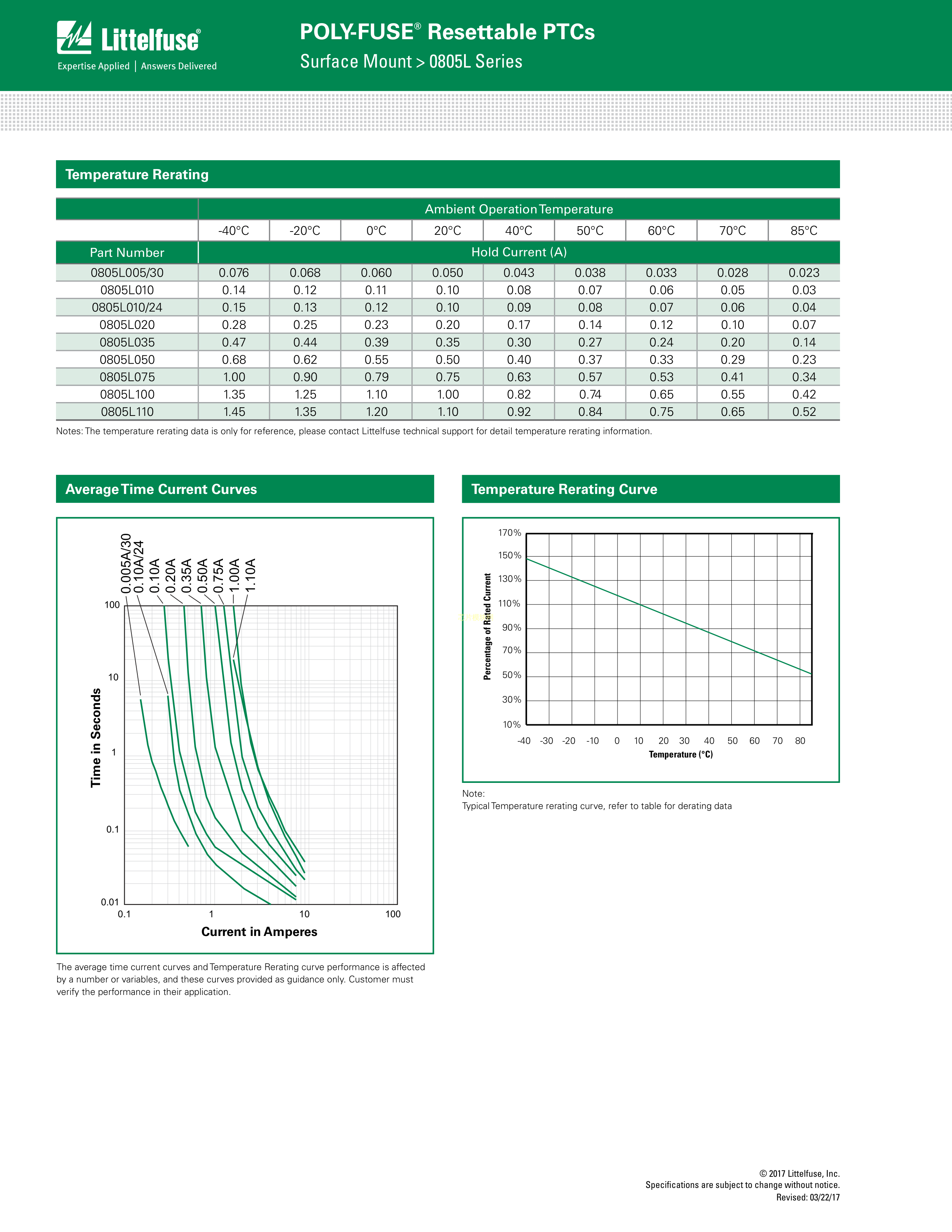 0805L100WR数据手册0805封装Littelfuse(美国力特)PDF规格书,中英文下载