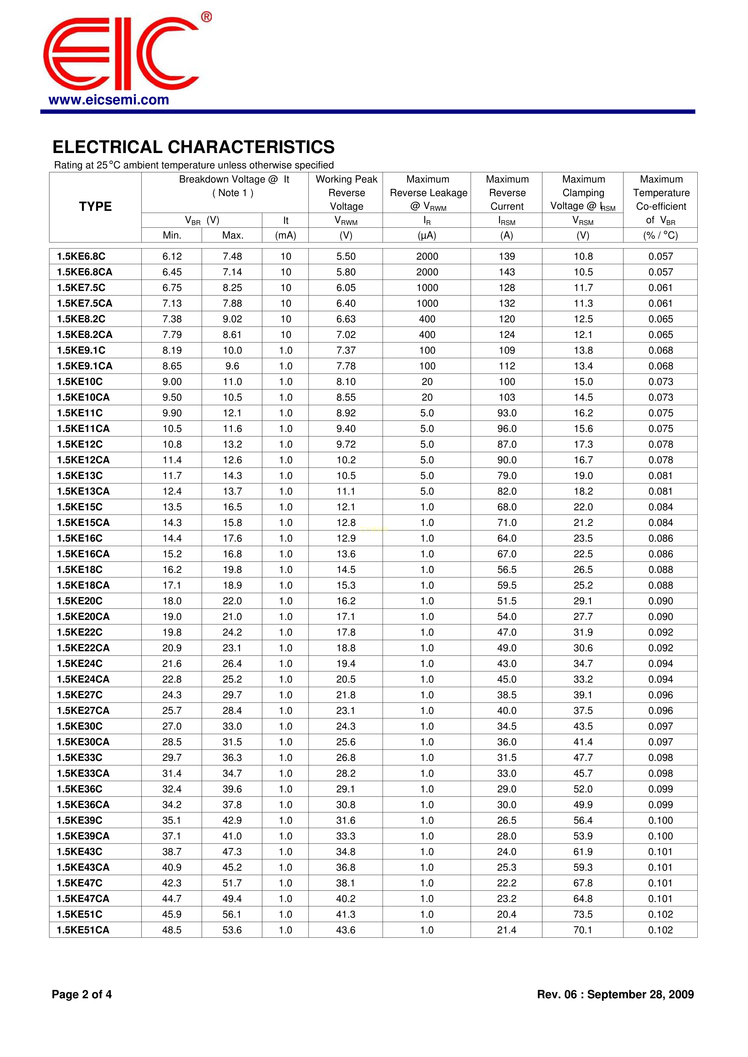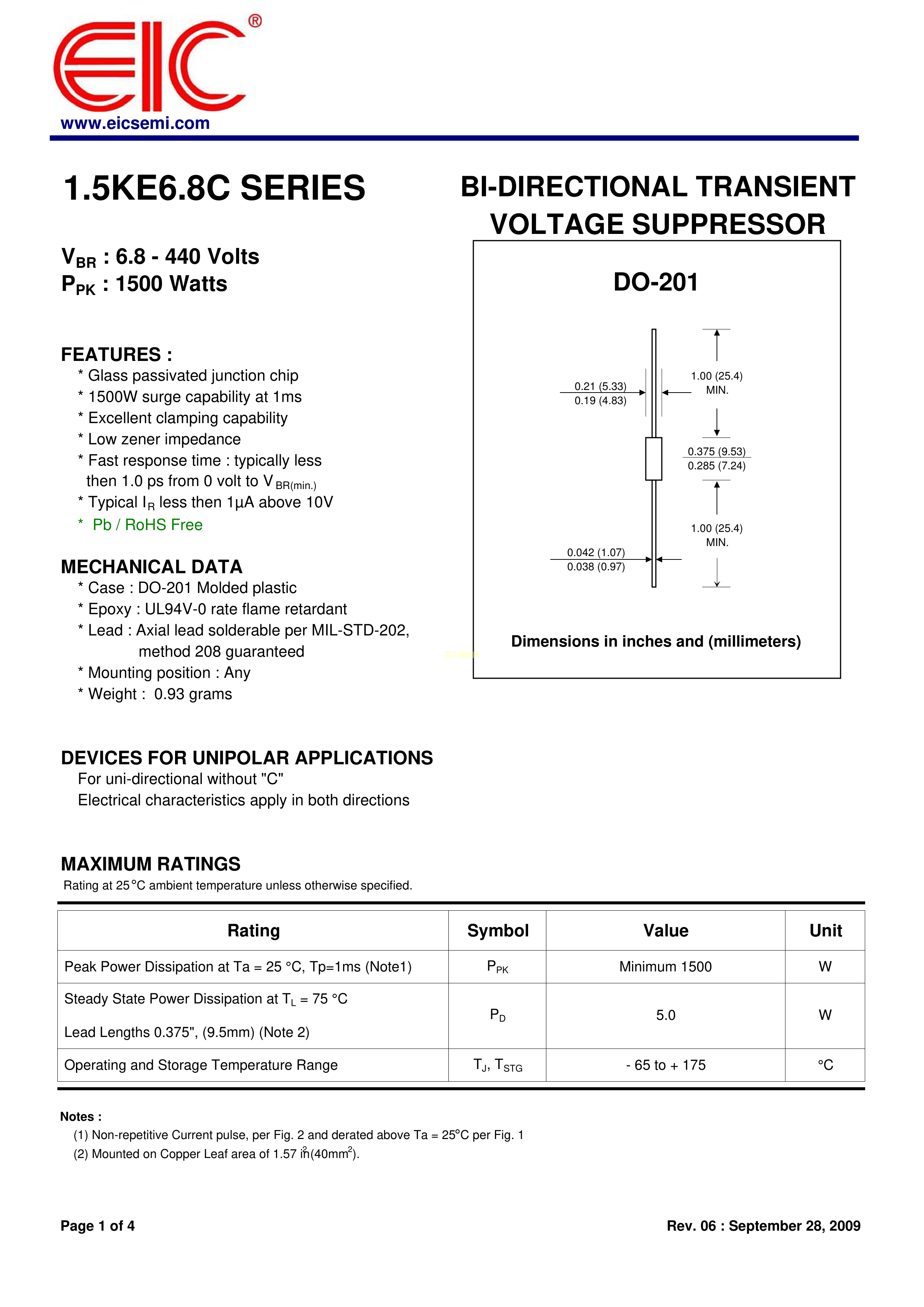 1.5KE33CA数据手册DO-201封装EICPDF规格书,中英文下载