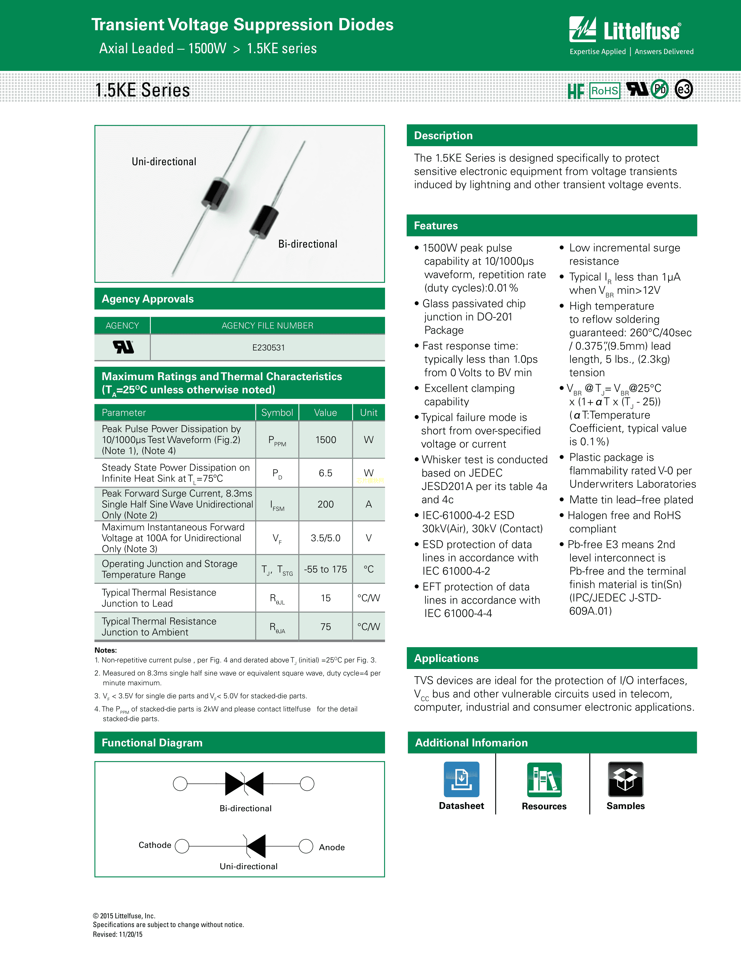 1.5KE550CA数据手册DO-201封装SEMIWARE(赛米微尔)PDF规格书,中英文下载