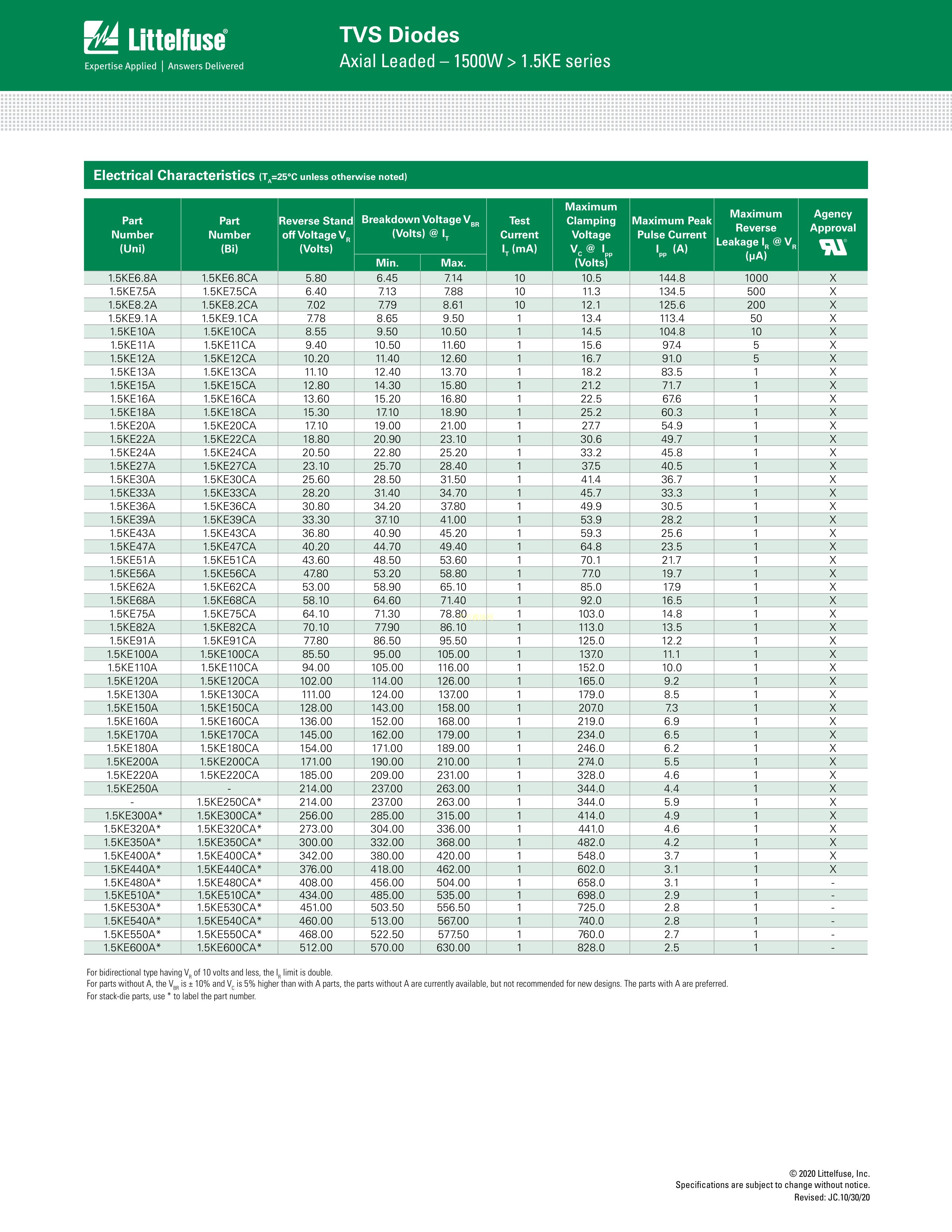 1.5KE9.1A数据手册DO-201封装Littelfuse(美国力特)PDF规格书,中英文下载