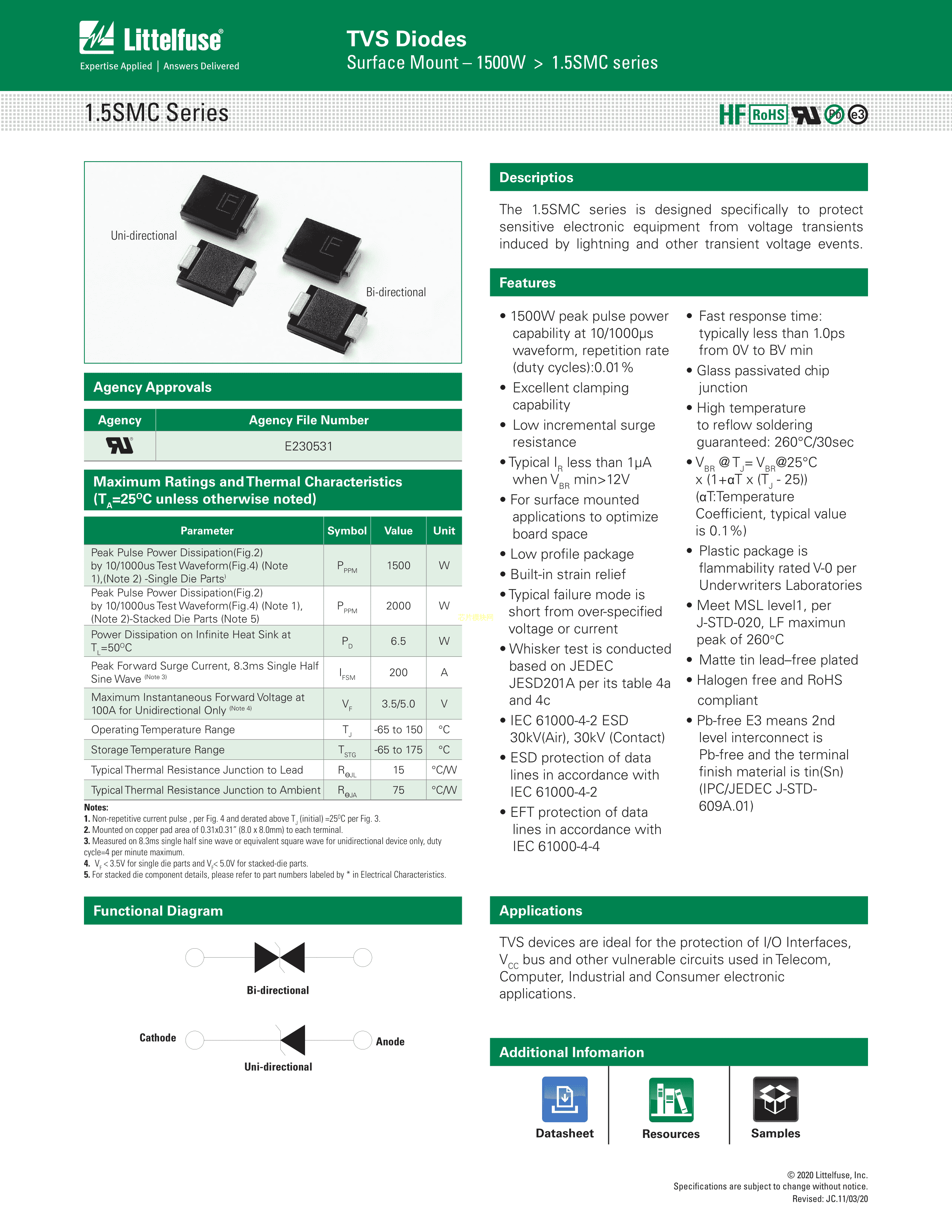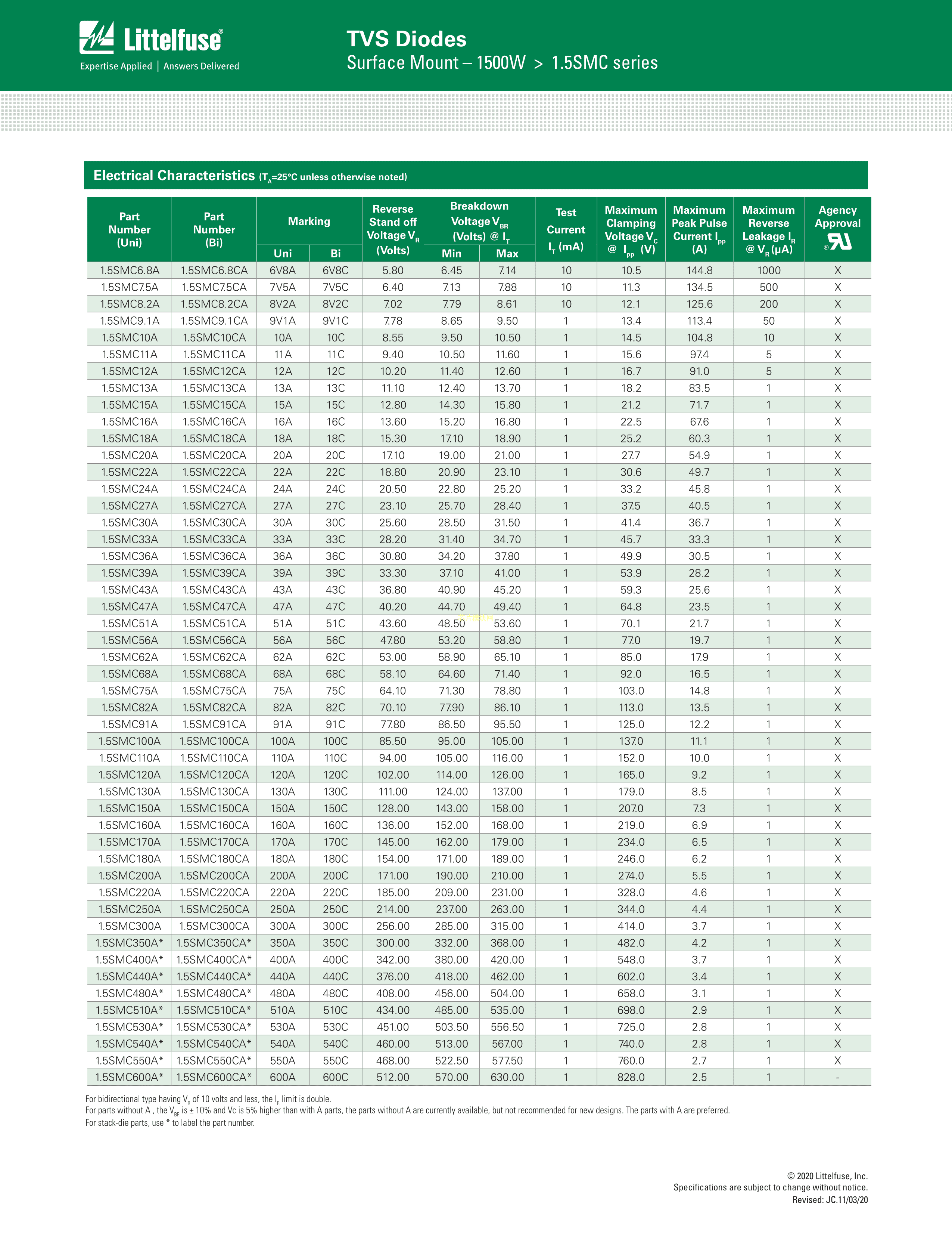 1.5SMC100CA数据手册DO-214AB(SMCJ)封装Littelfuse(美国力特)PDF