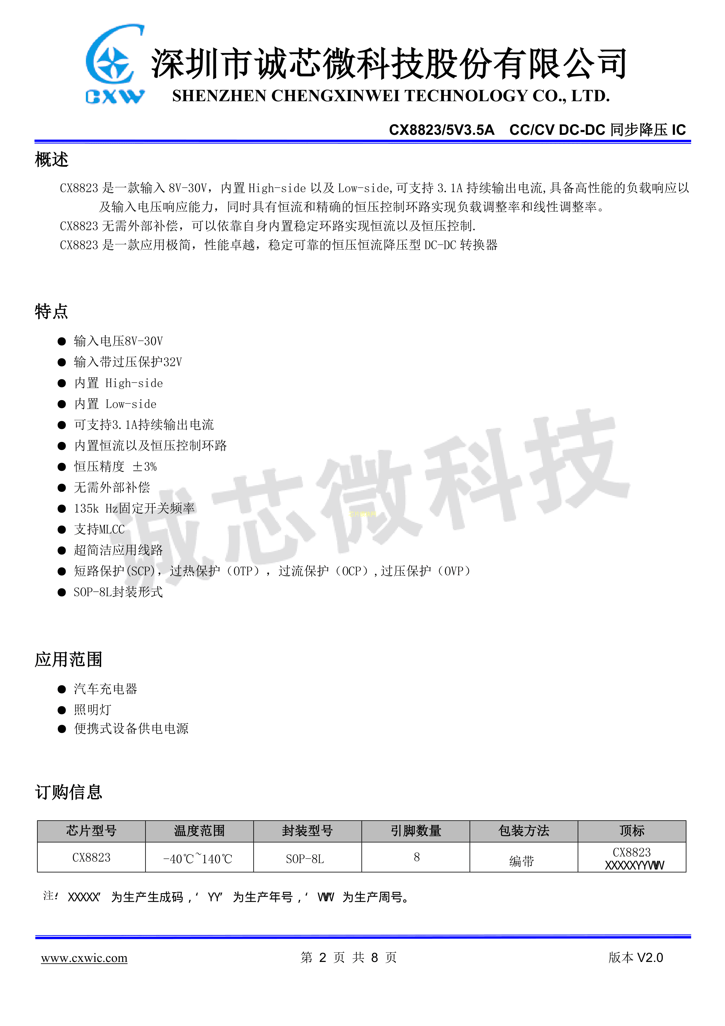 CX8823数据手册SOP-8封装CXW(诚芯微)PDF规格书,中英文下载
