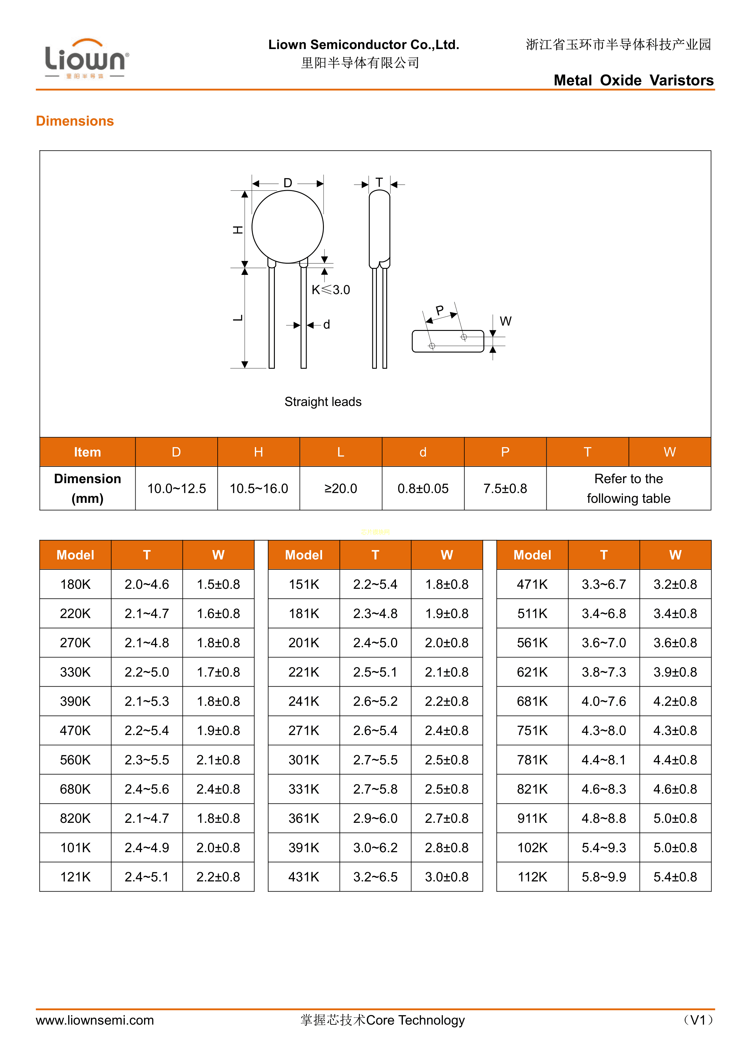 102KD10数据手册径向引线封装Liown(里阳半导体)PDF规格书,中英文下载