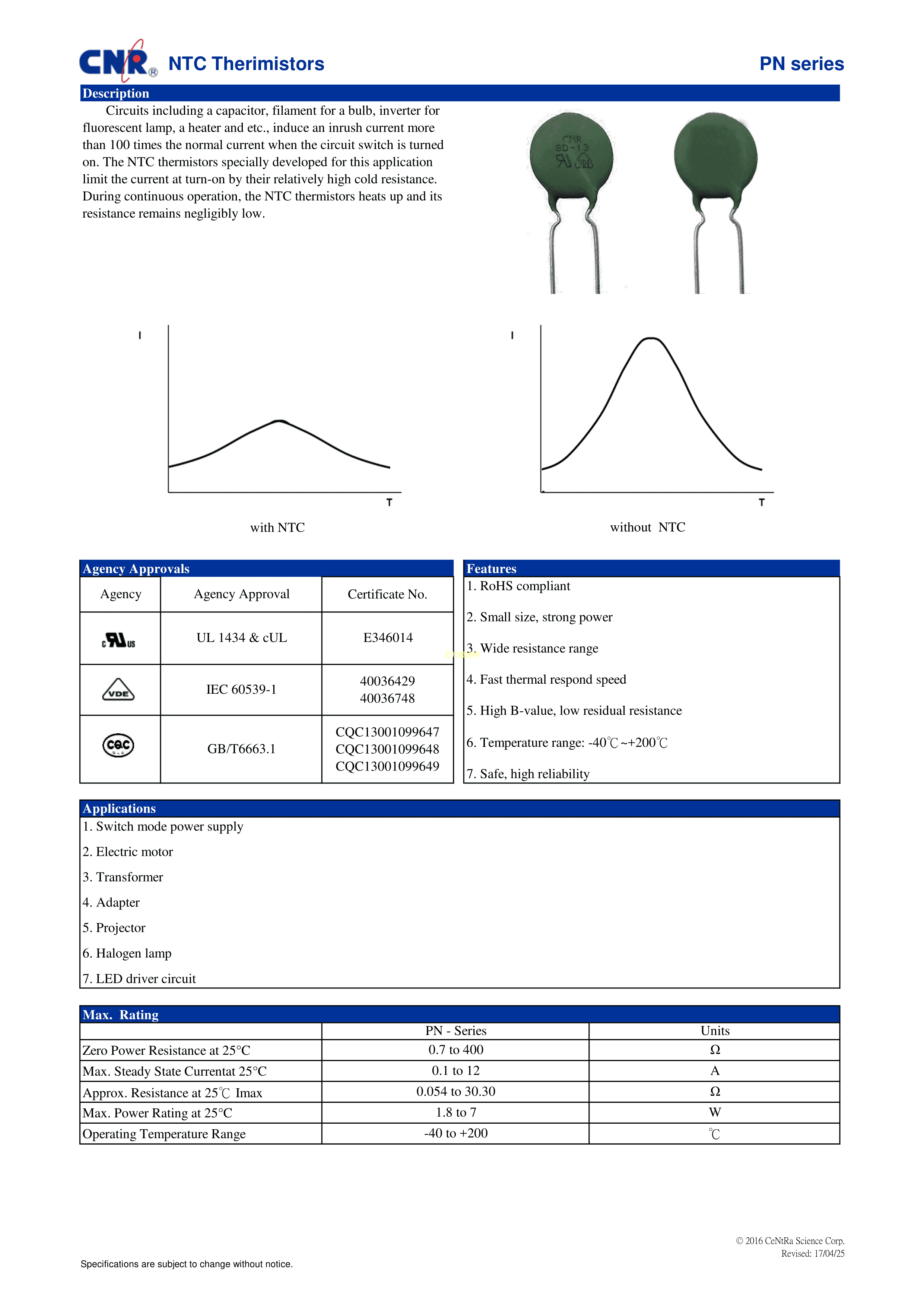 10D-11数据手册径向引线P7.5mm封装CNR(舜全)PDF规格书,中英文下载