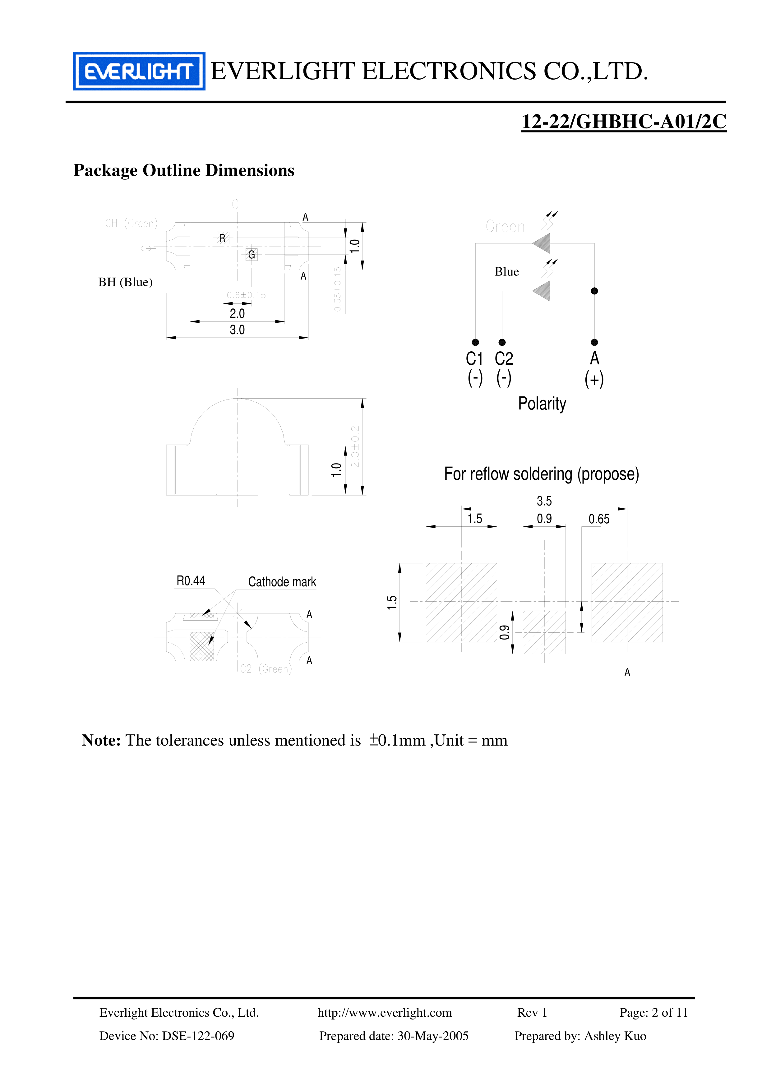 12-22-GHBHC-A01-2C数据手册SMD3x1x2mm封装EVERLIGHT(台湾亿光)P