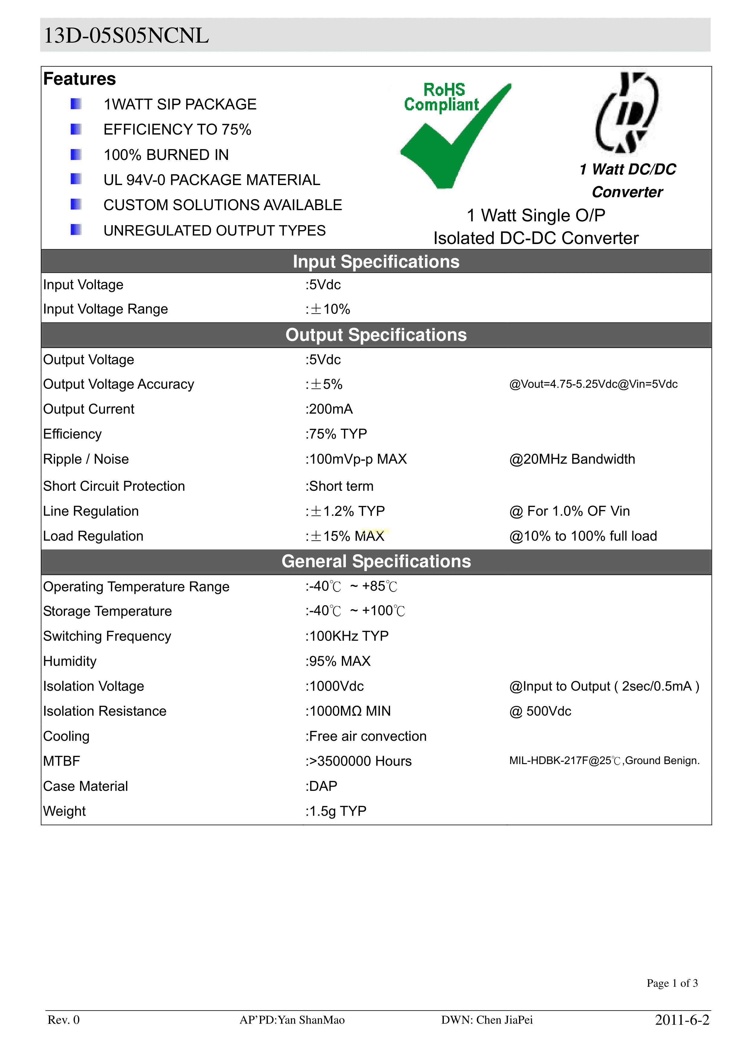 13D-05S05NCNL数据手册插件封装YDS(元册科技)PDF规格书,中英文下载