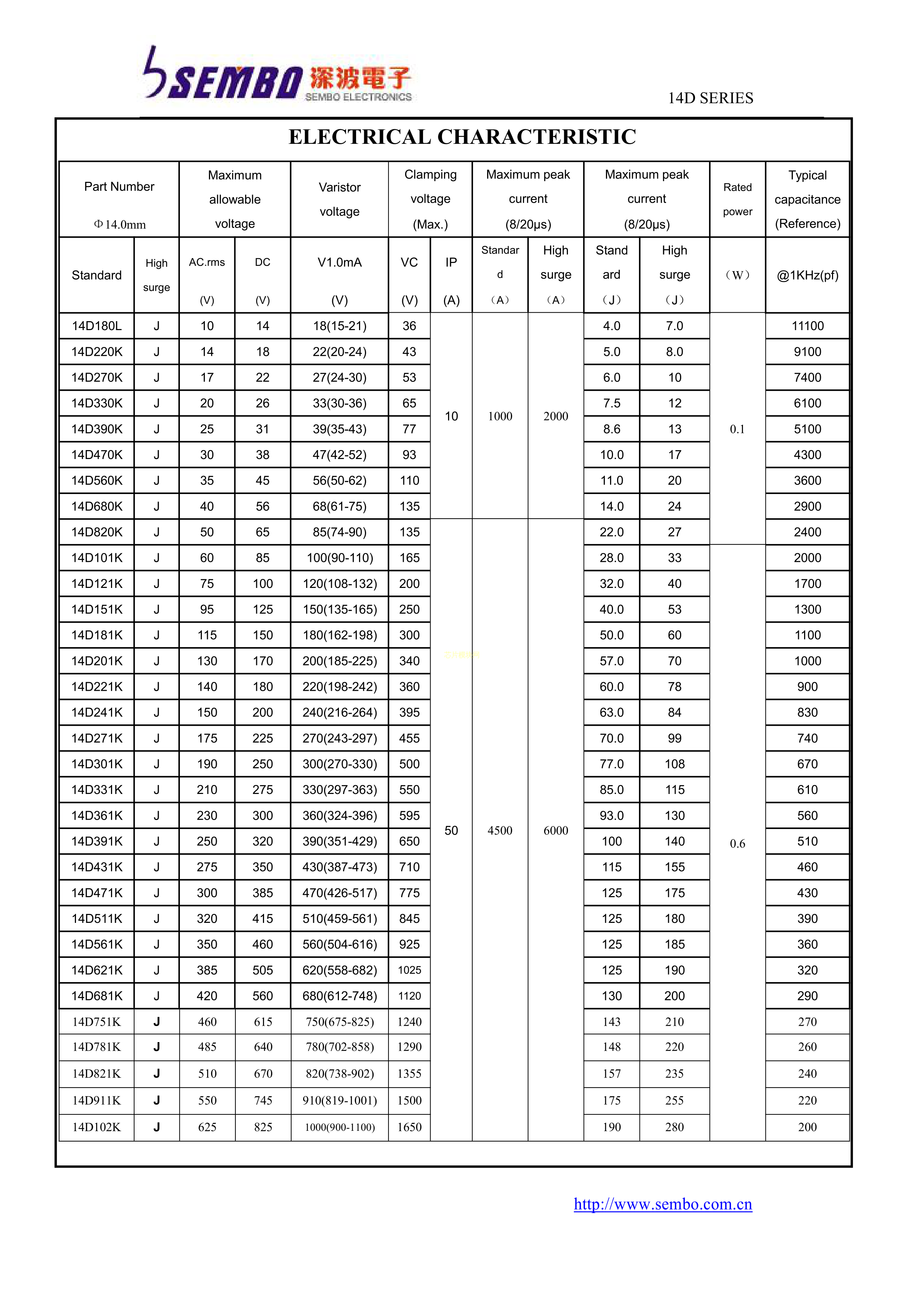 14D511K数据手册径向引线封装SEMBO(深波)PDF规格书,中英文下载