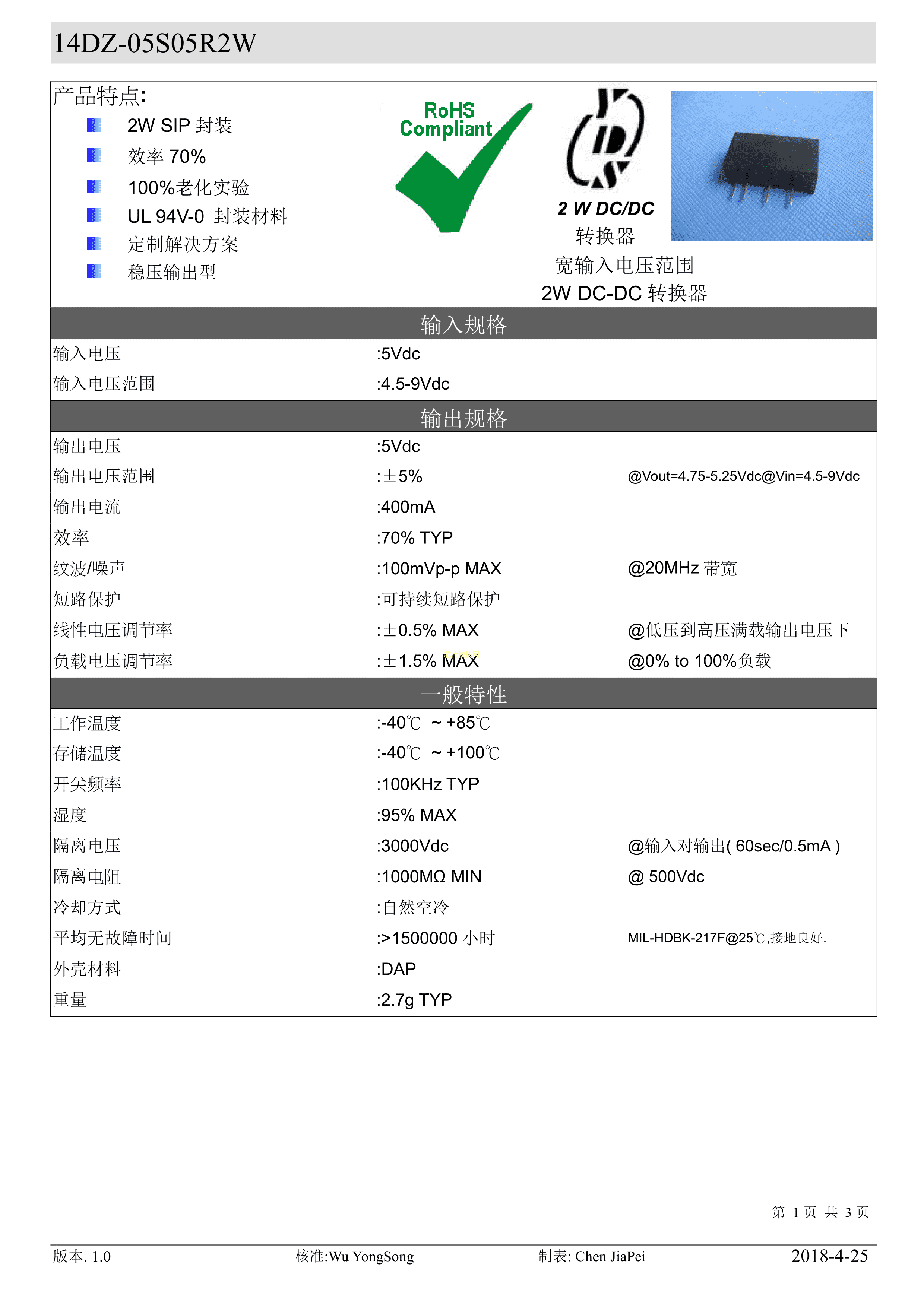 14DZ-05S05R2W数据手册插件封装YDS(元册科技)PDF规格书,中英文下载