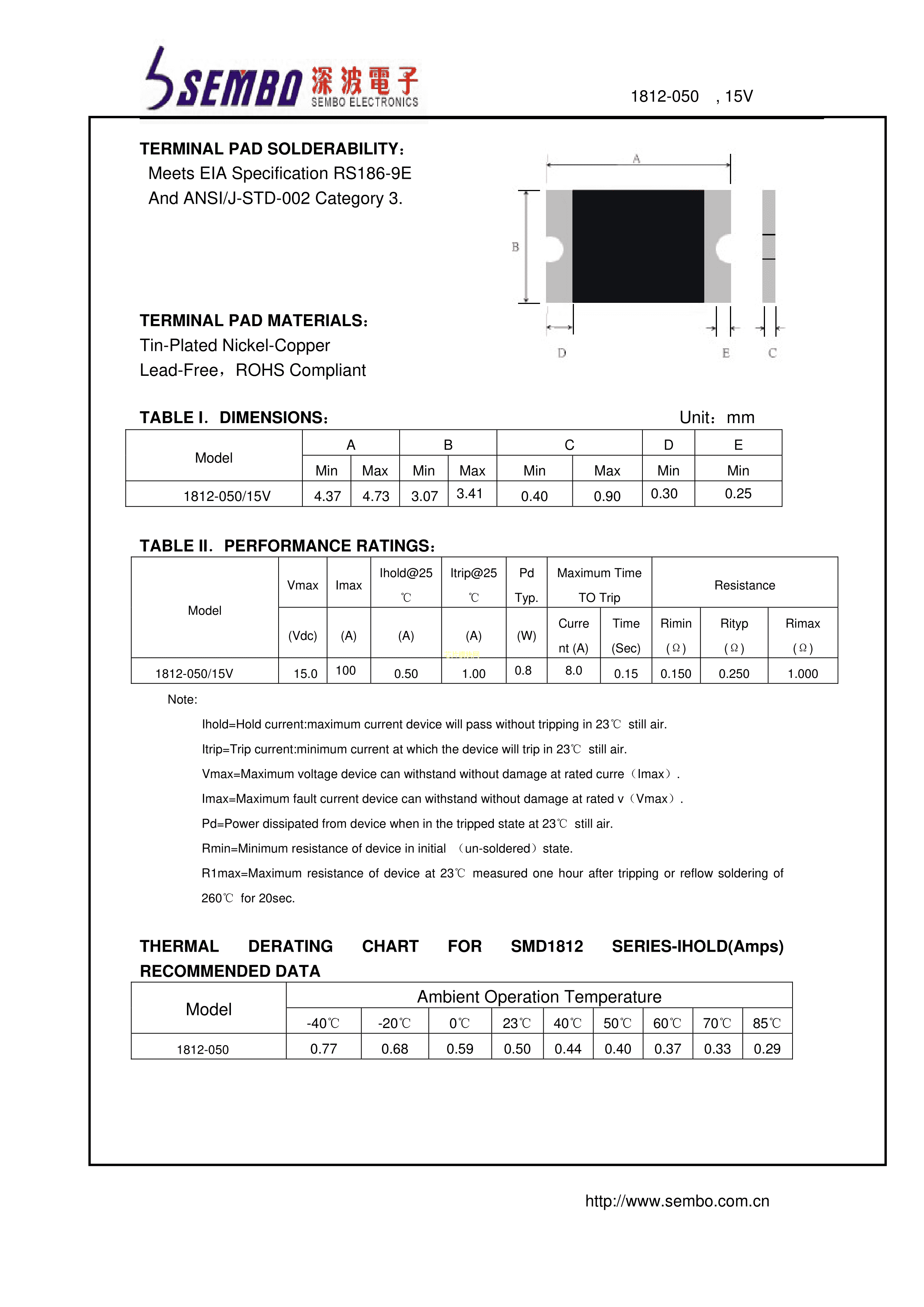 1812-050-15V数据手册1812封装SEMBO(深波)PDF规格书,中英文下载