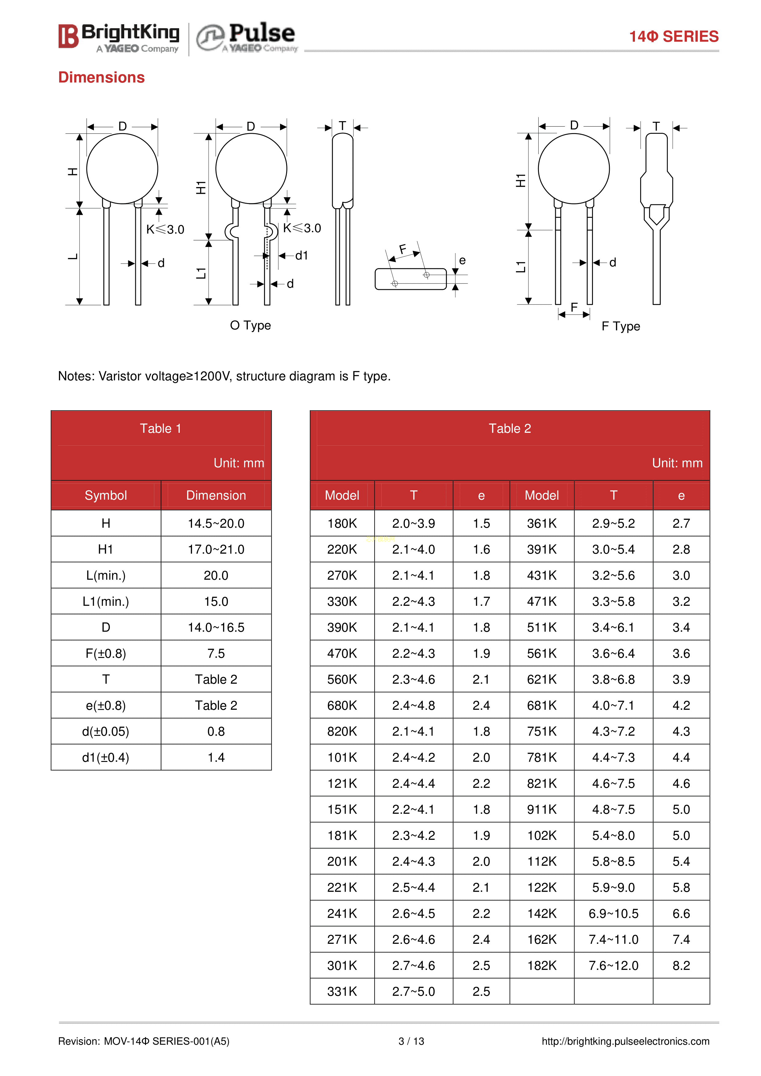 182KD14数据手册径向引线封装Brightking(台湾君耀)PDF规格书,中英文下载