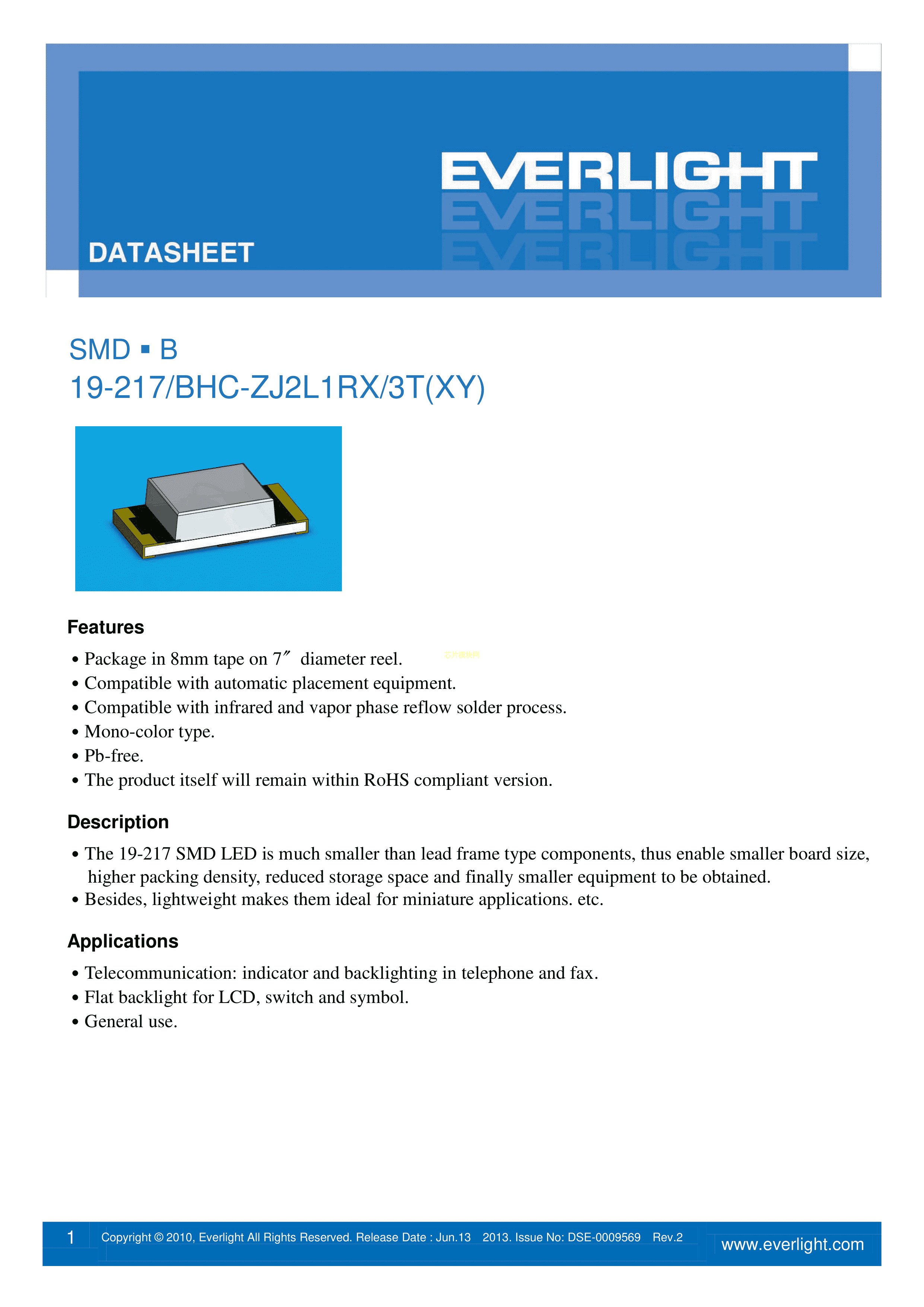 19-217-BHC-ZJ2L1RX-3T(XY)数据手册SMD封装EVERLIGHT(台湾亿光)P