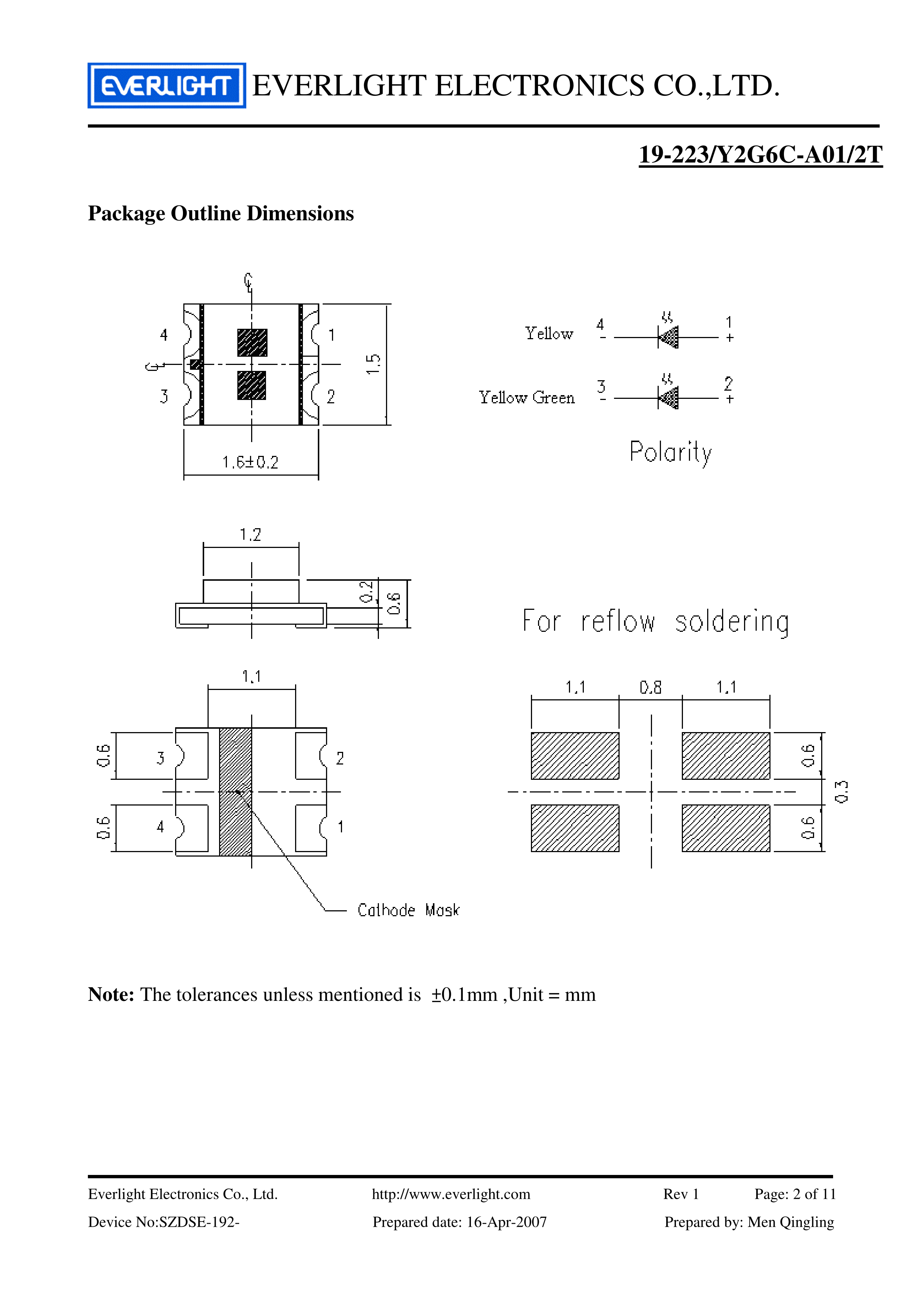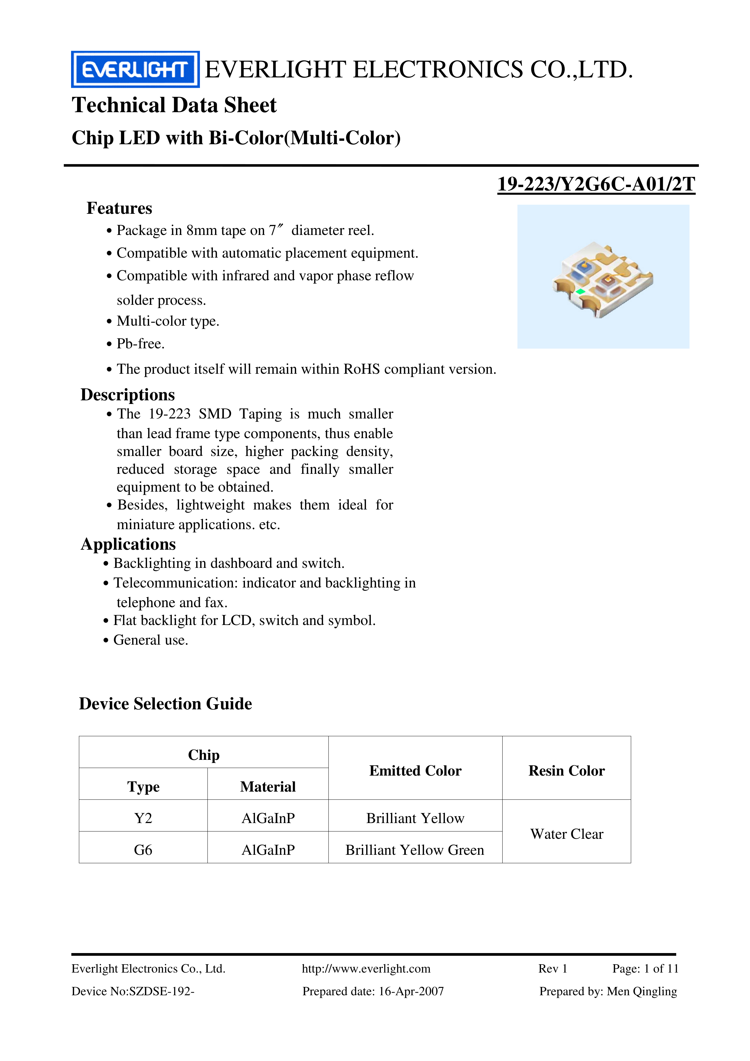 19-223-Y2G6C-A01-2T数据手册SMD1.6x1.5mm封装EVERLIGHT(台湾亿