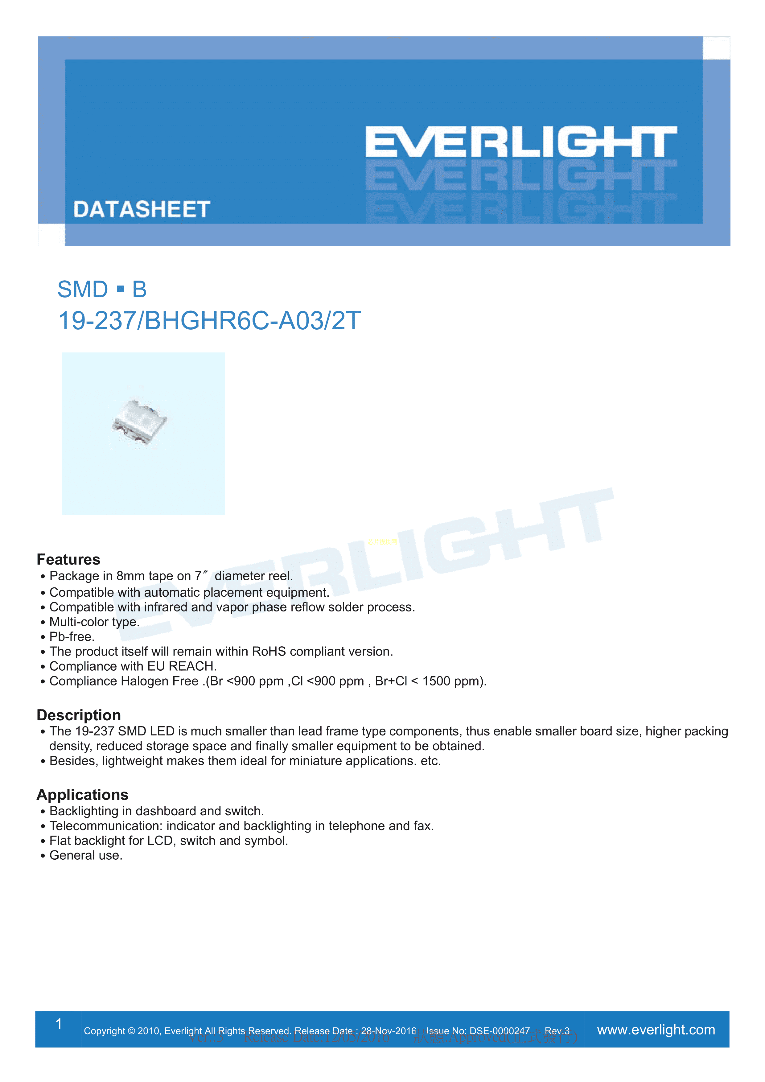 19-237-BHGHR6C-A03-2T数据手册SMD1.6x1.6mm封装EVERLIGHT(台