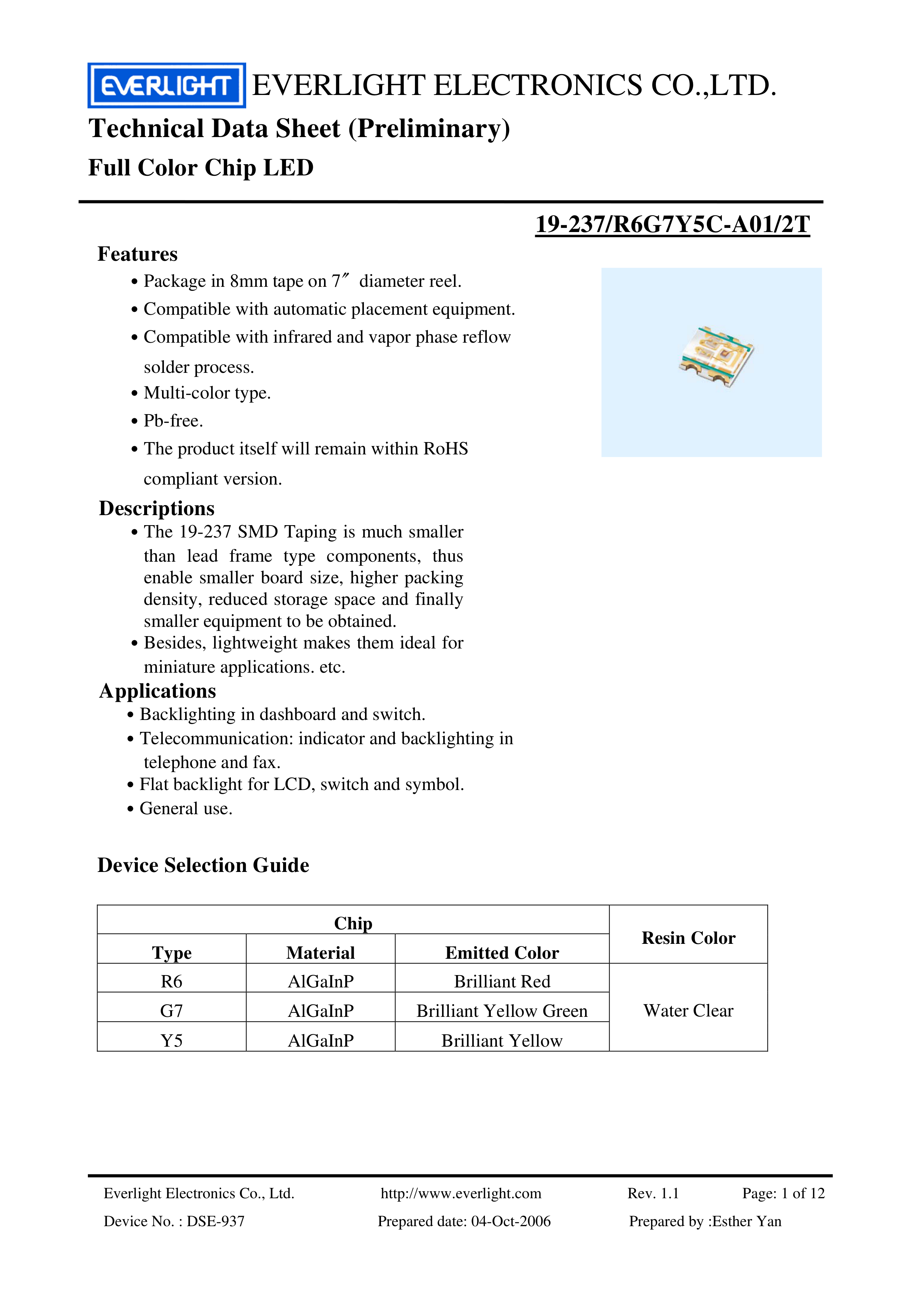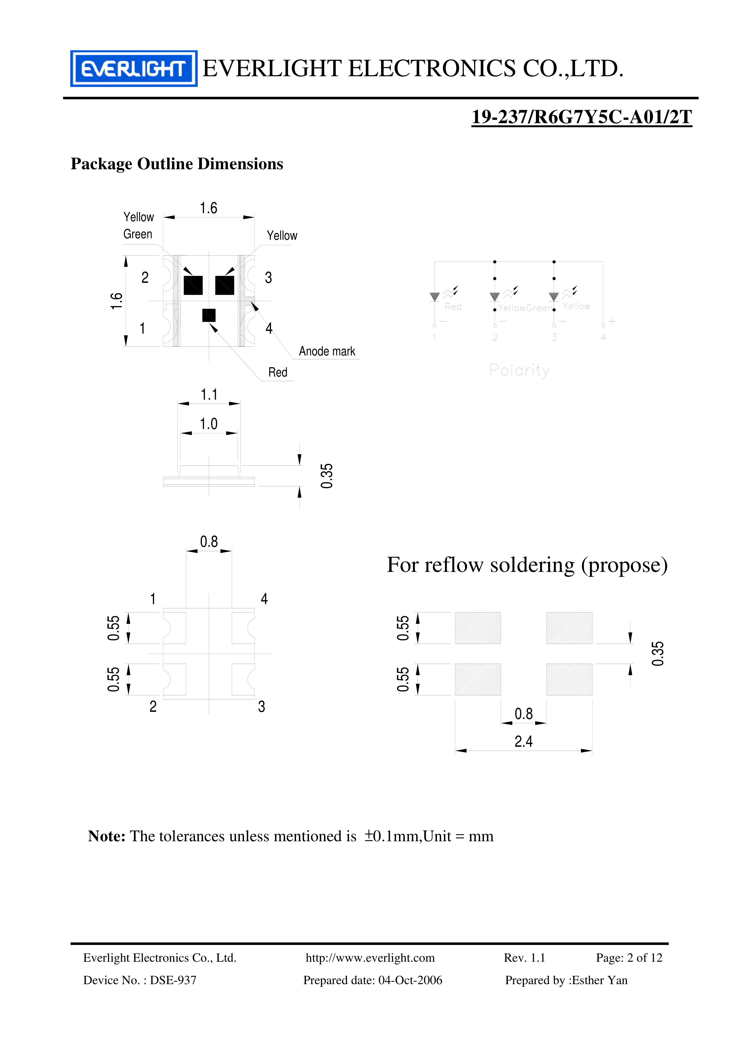 19-237-R6G7Y5C-A01-2T数据手册SMD1.6x1.6mm封装EVERLIGHT(台