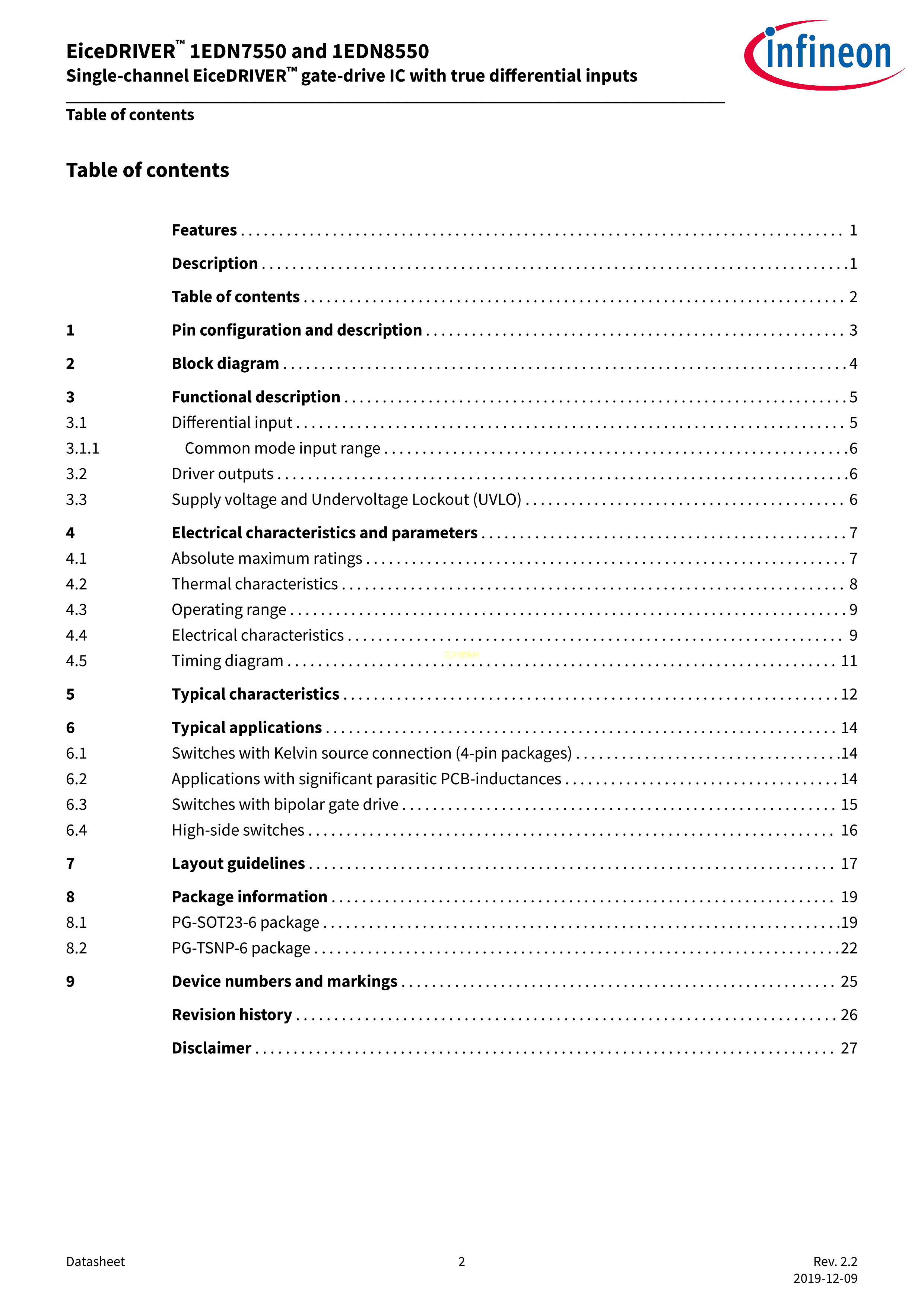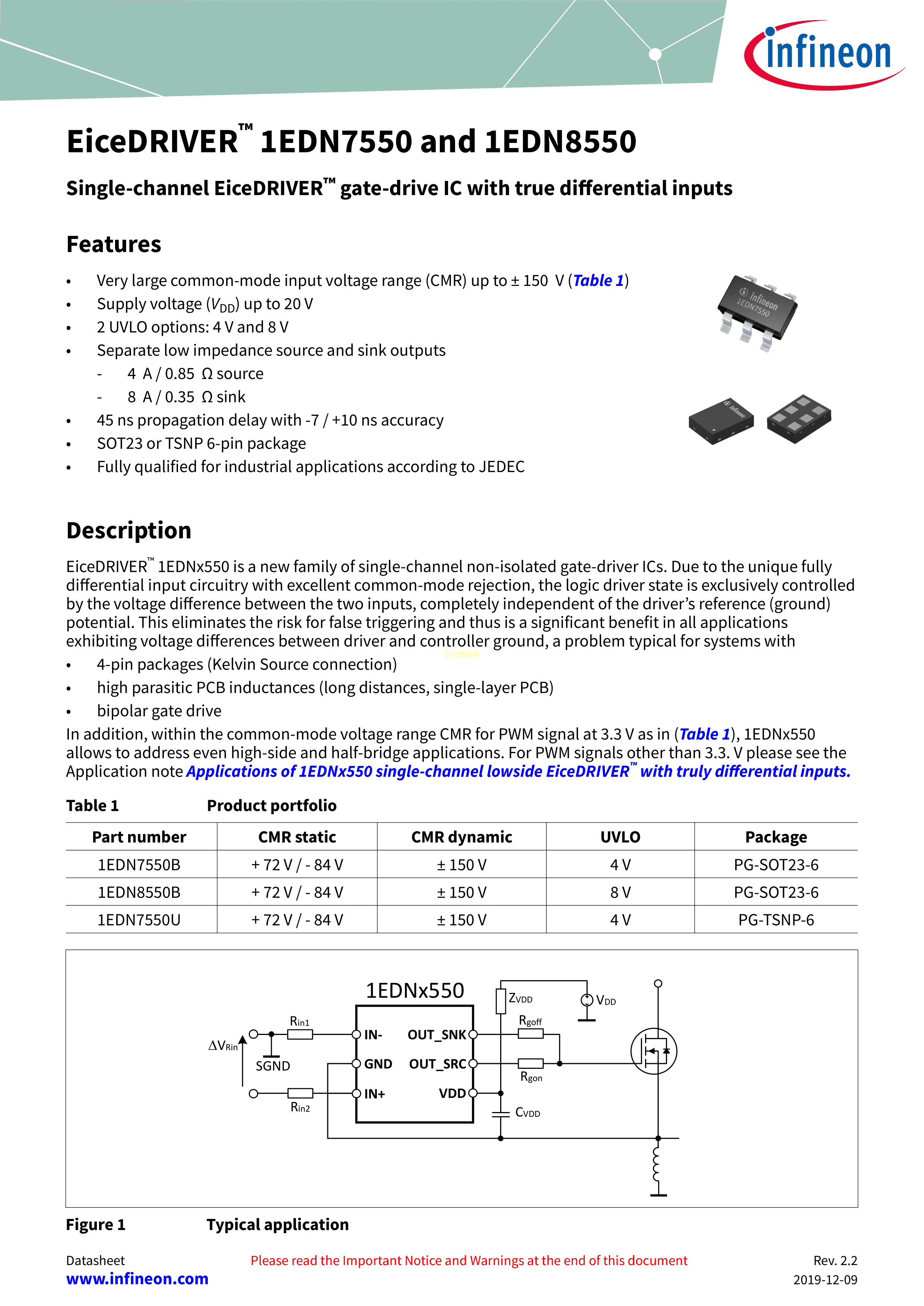 1EDN7550B数据手册PG-SOT23-6封装Infineon(英飞凌)PDF规格书,中英文下载