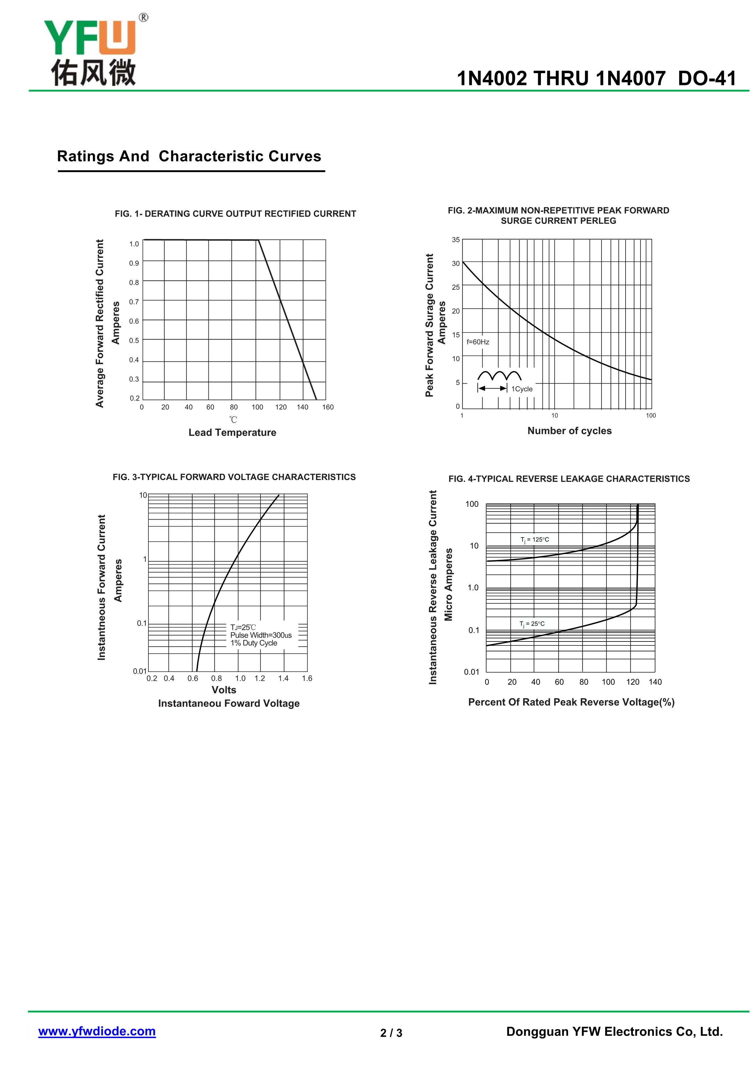 1N4007弯脚N型数据手册DO-41封装YFW(佑风微)PDF规格书,中英文下载