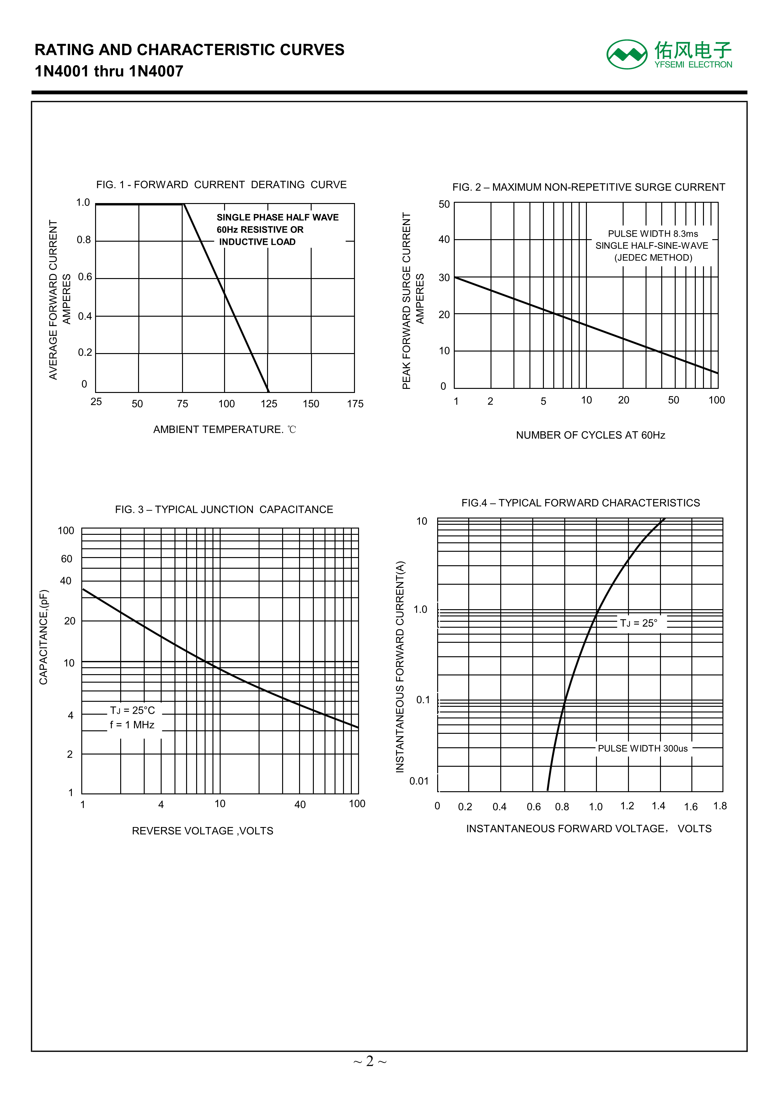 1N4007数据手册DO-41封装YFSEMI(江苏佑风微)PDF规格书,中英文下载