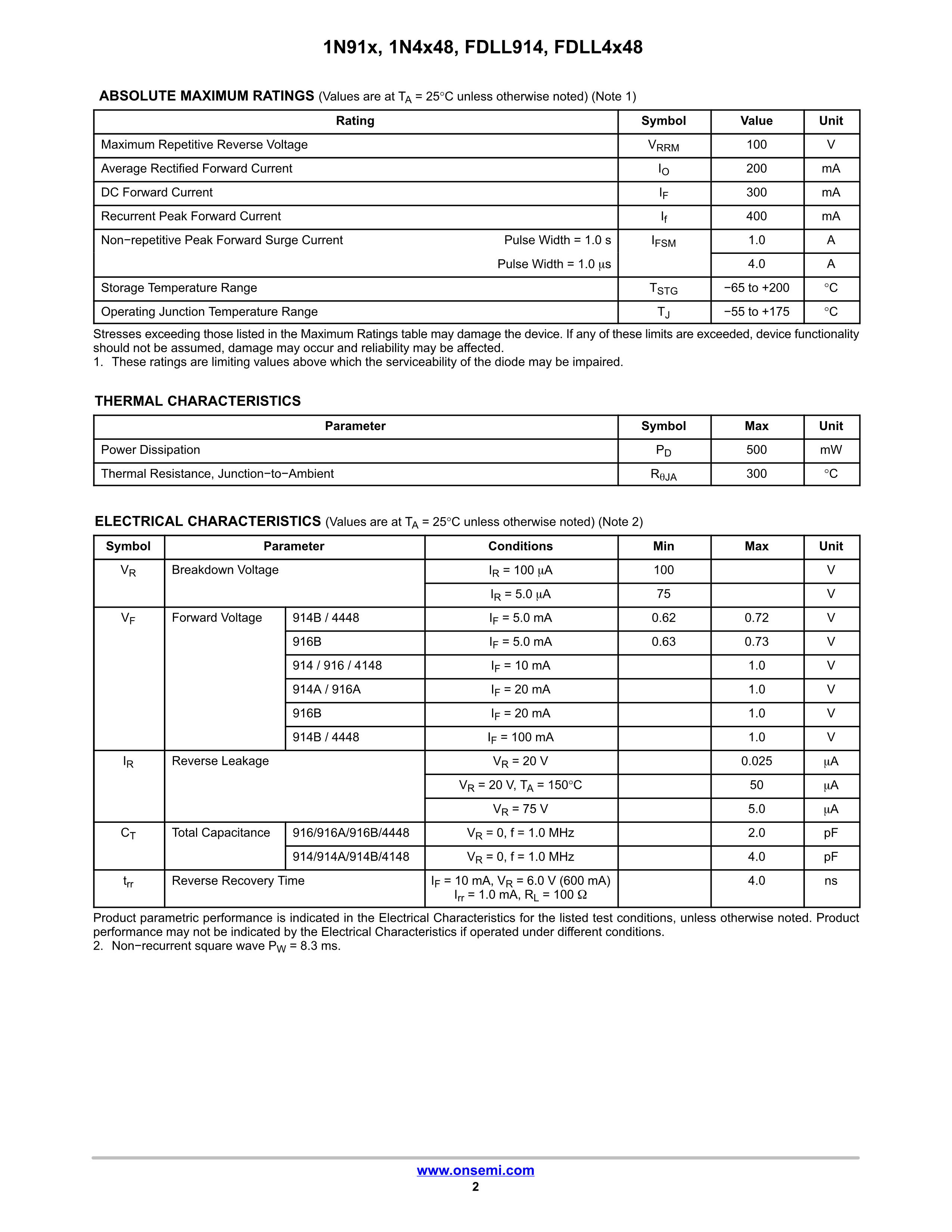 1N4148-T26A数据手册DO-35封装onsemi(安森美)PDF规格书,中英文下载