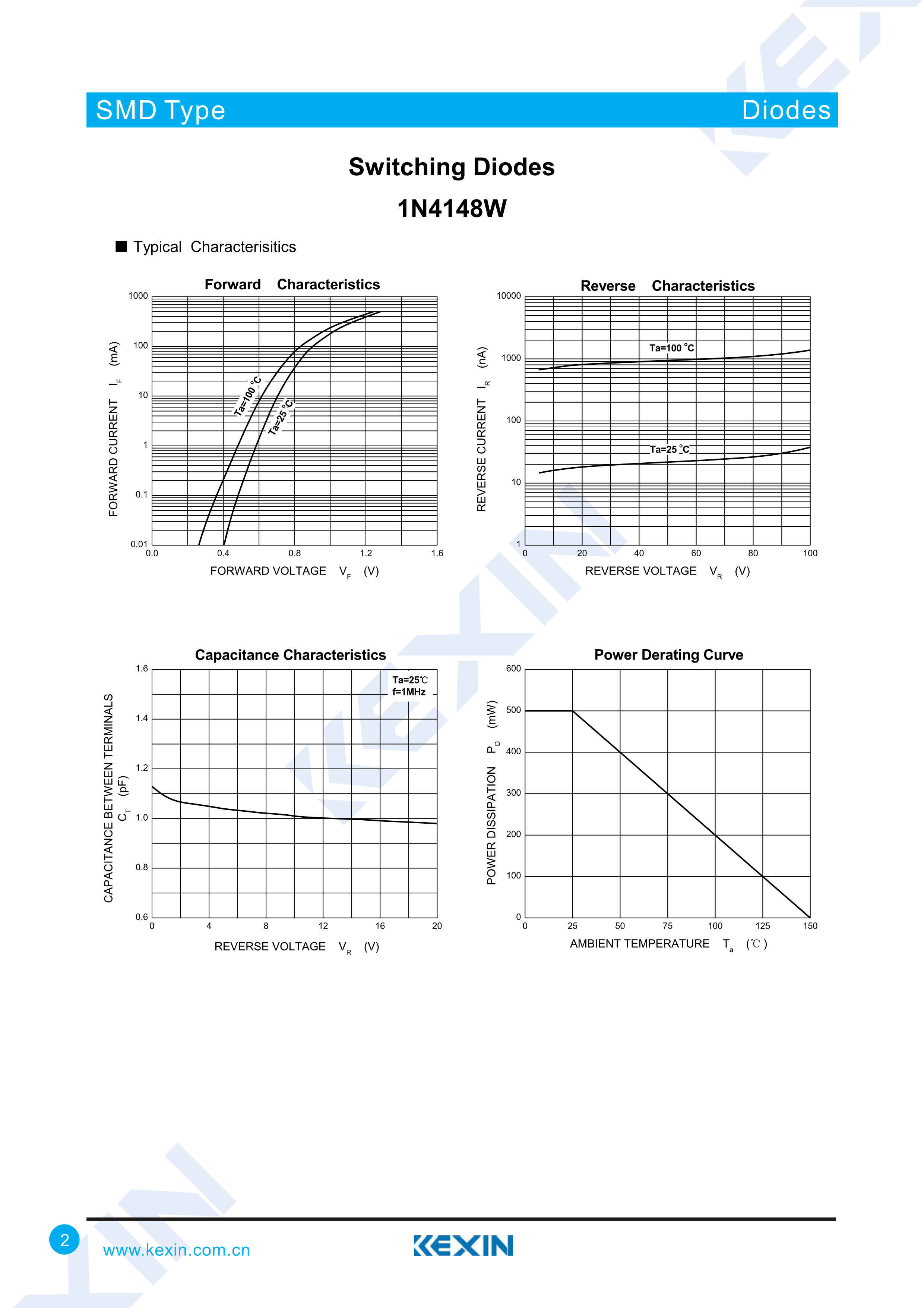 1N4148W数据手册SOD-123封装KEXIN(科信)PDF规格书,中英文下载