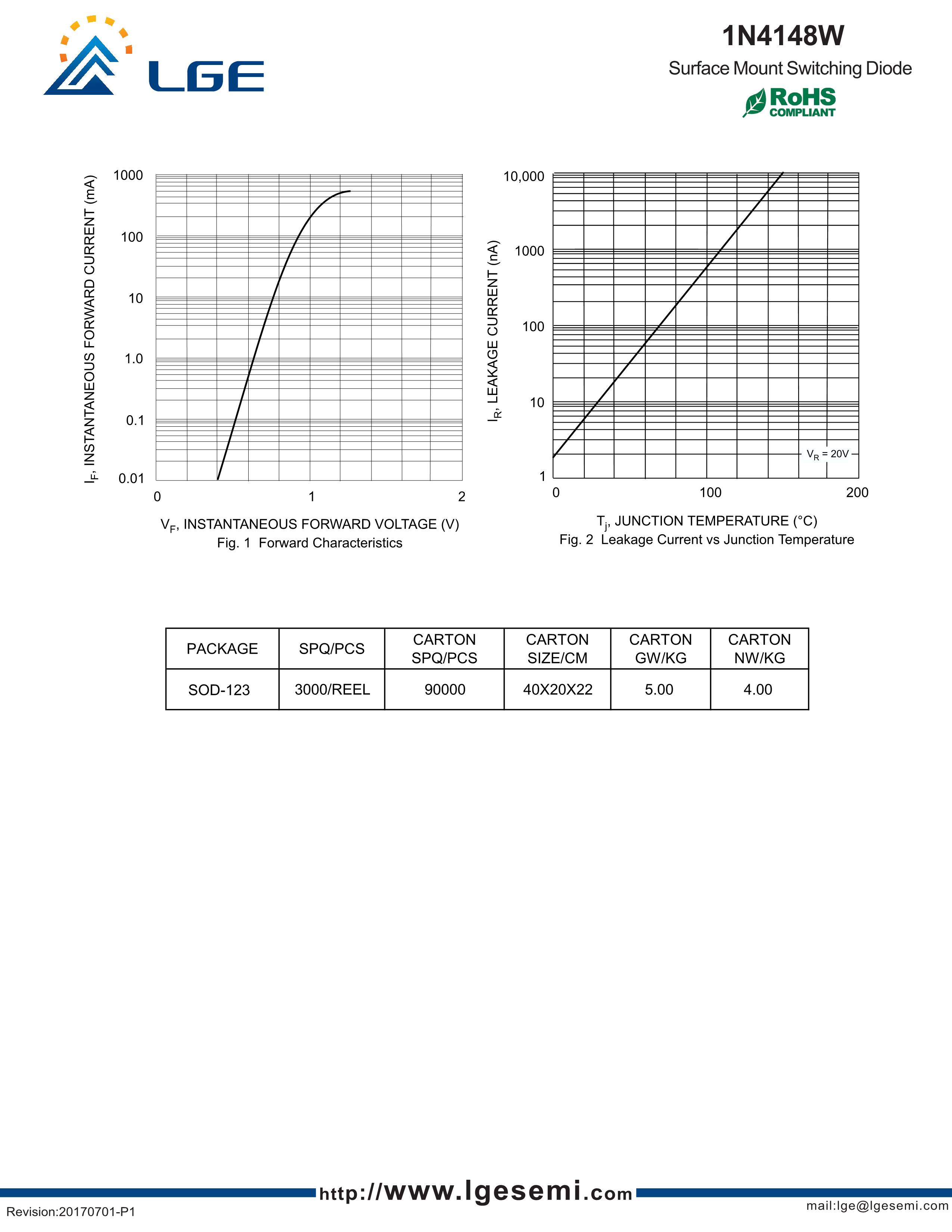 1N4148W数据手册SOD-123封装LGE(鲁光)PDF规格书,中英文下载