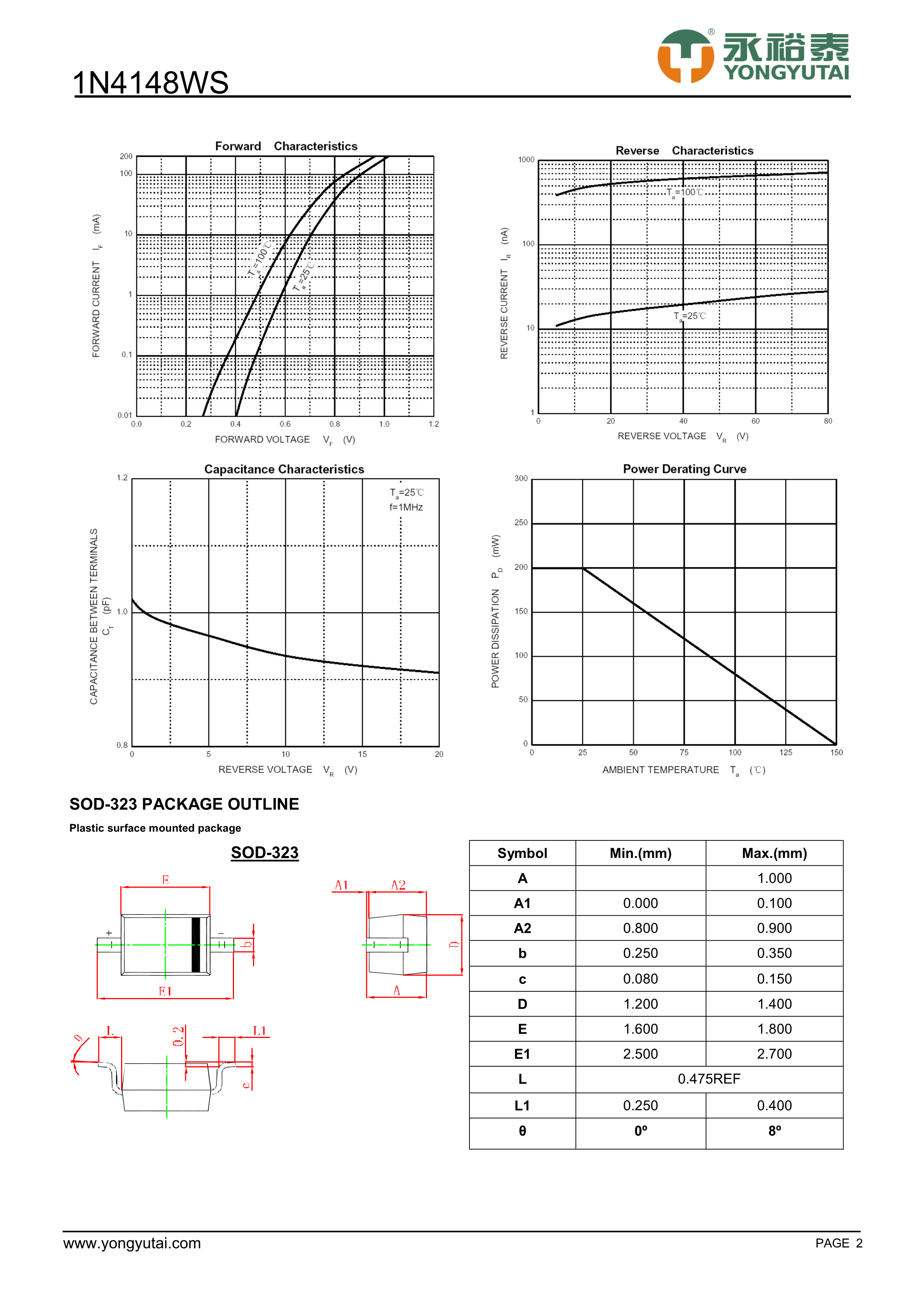 1N4148WS数据手册SOD-323封装YONGYUTAI(永裕泰)PDF规格书,中英文下载