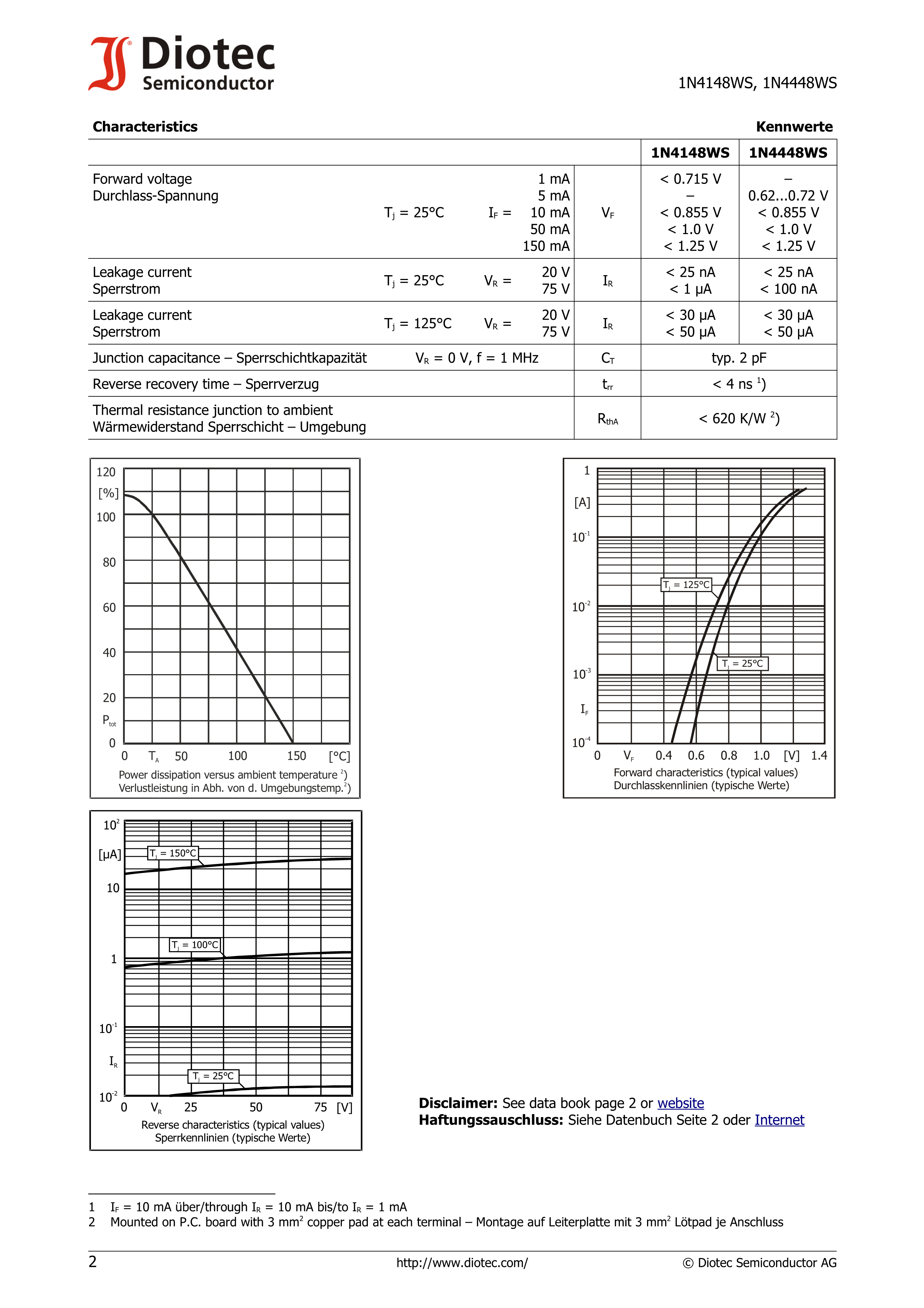 1N4148WS数据手册SOD-323F封装DIOTEC(德欧泰克)PDF规格书,中英文下载