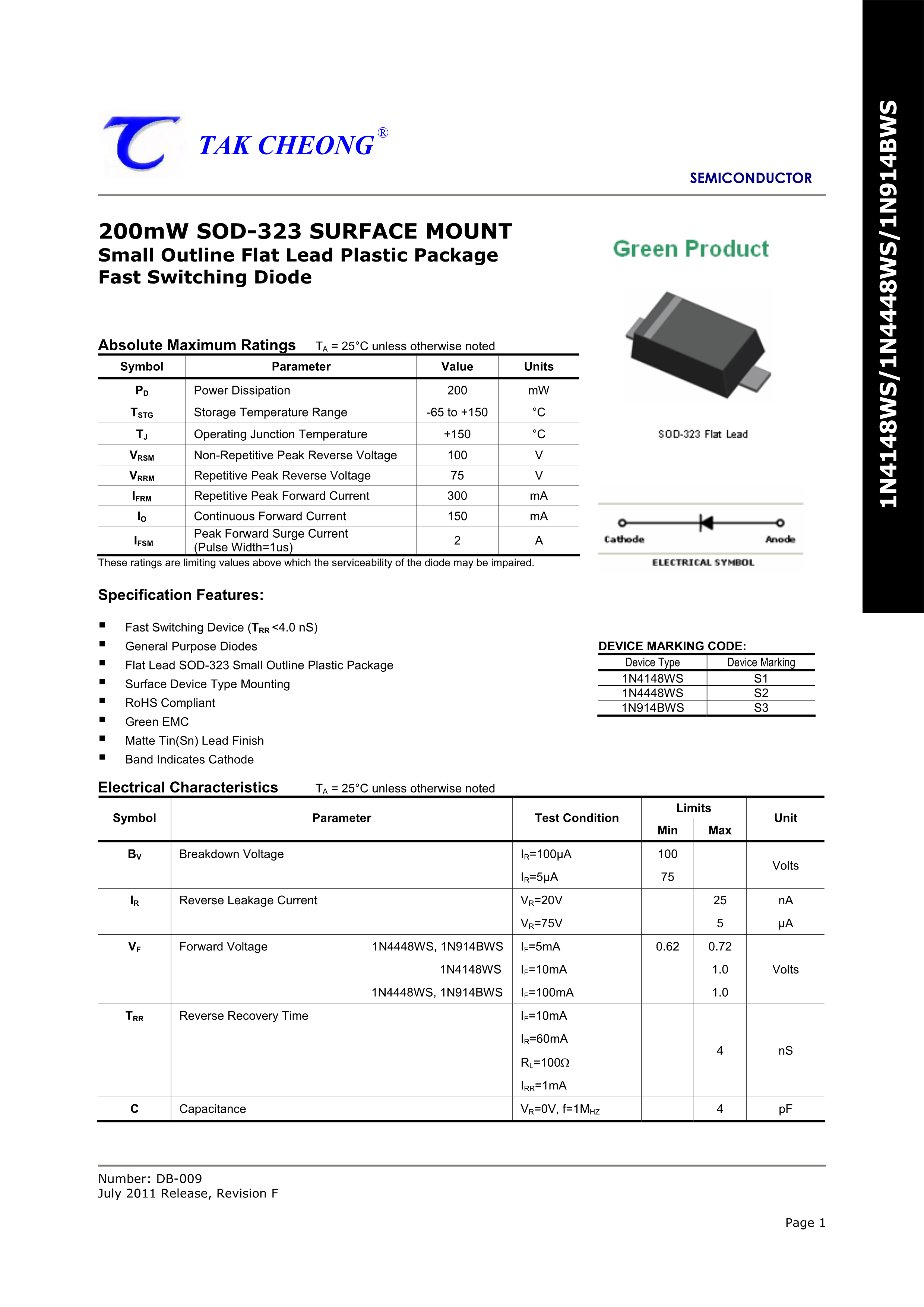 1N4148WS数据手册SOD-323FL封装TC(德昌)PDF规格书,中英文下载