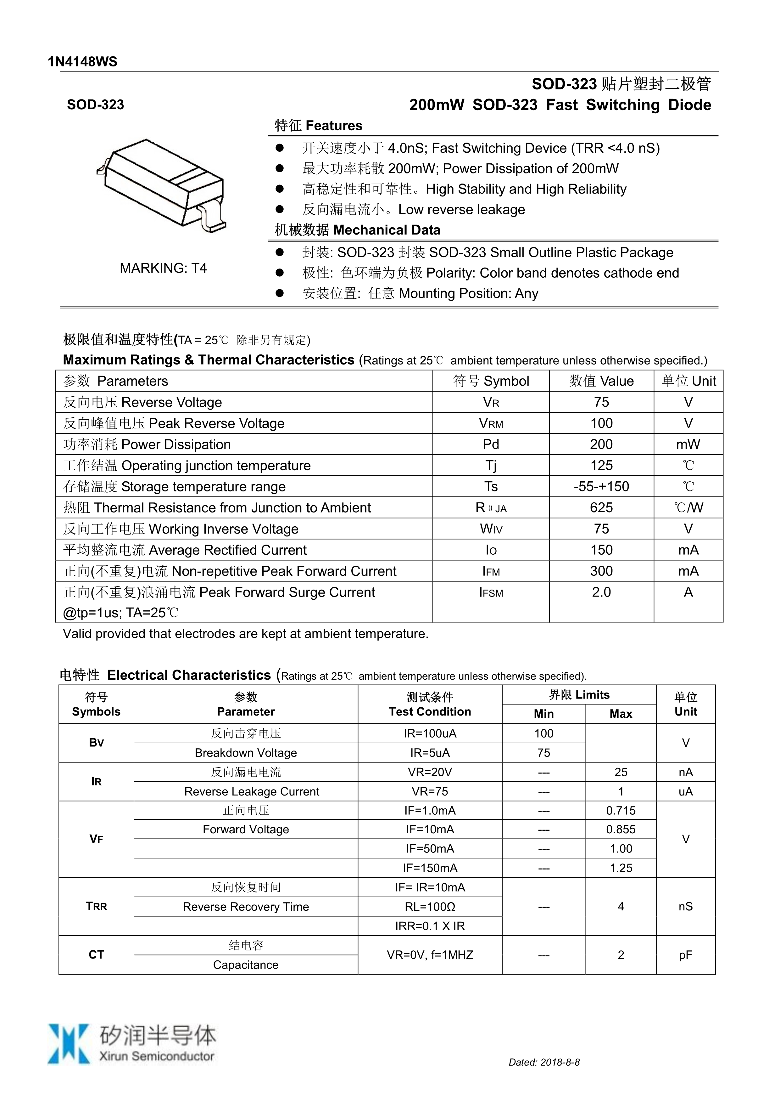 1N4148WS-T4数据手册SOD-323封装ZRE(治润)PDF规格书,中英文下载