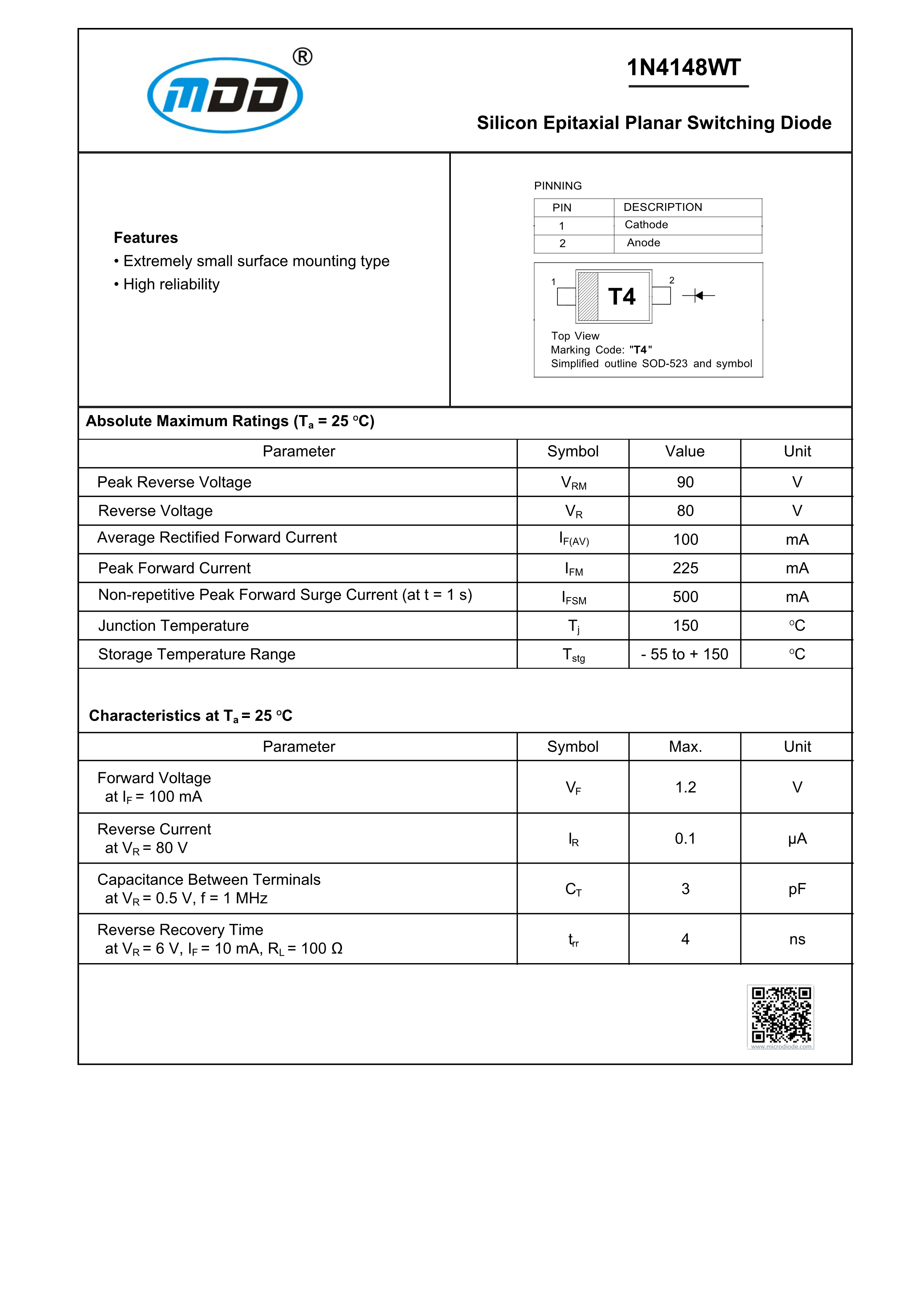 1N4148WT数据手册SOD-523封装MDDPDF规格书,中英文下载