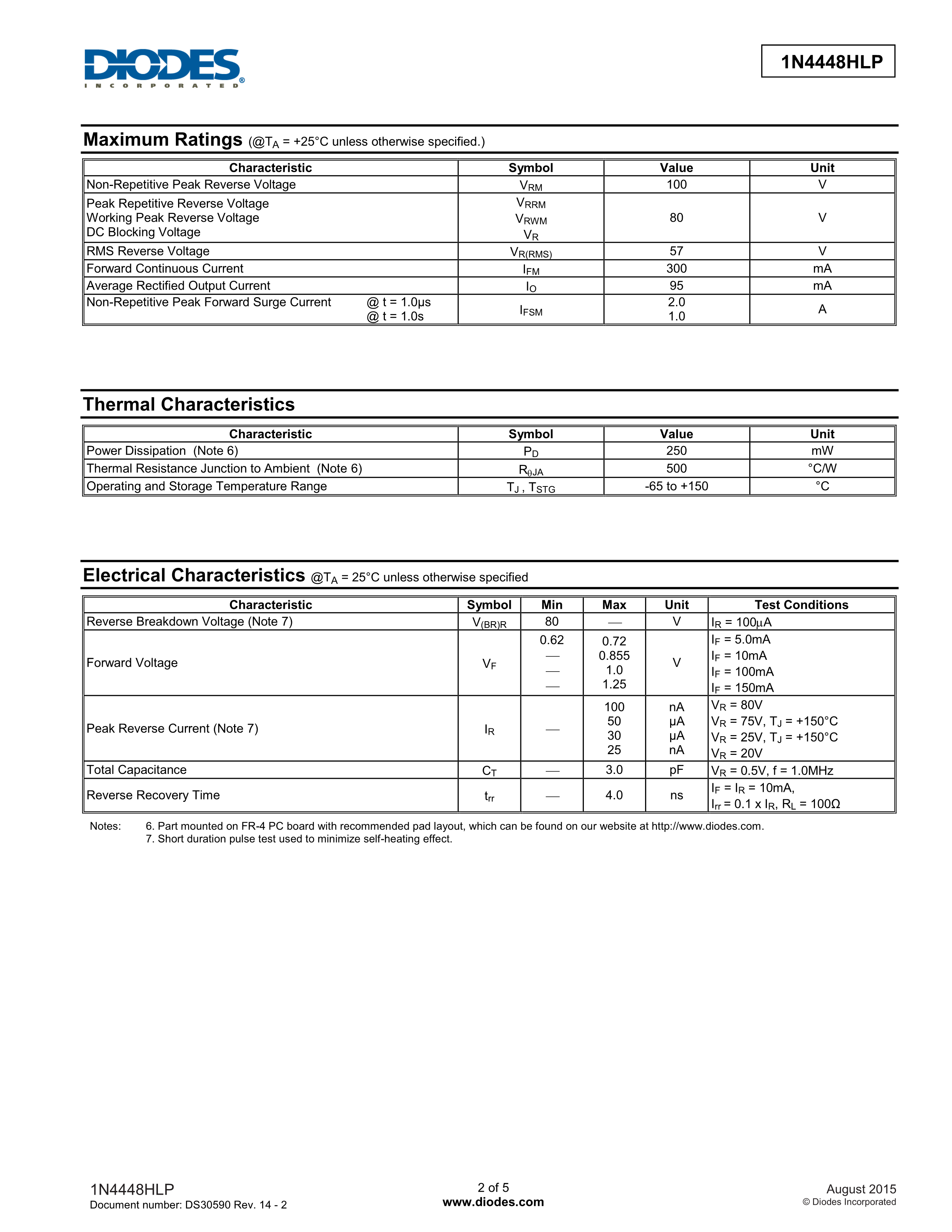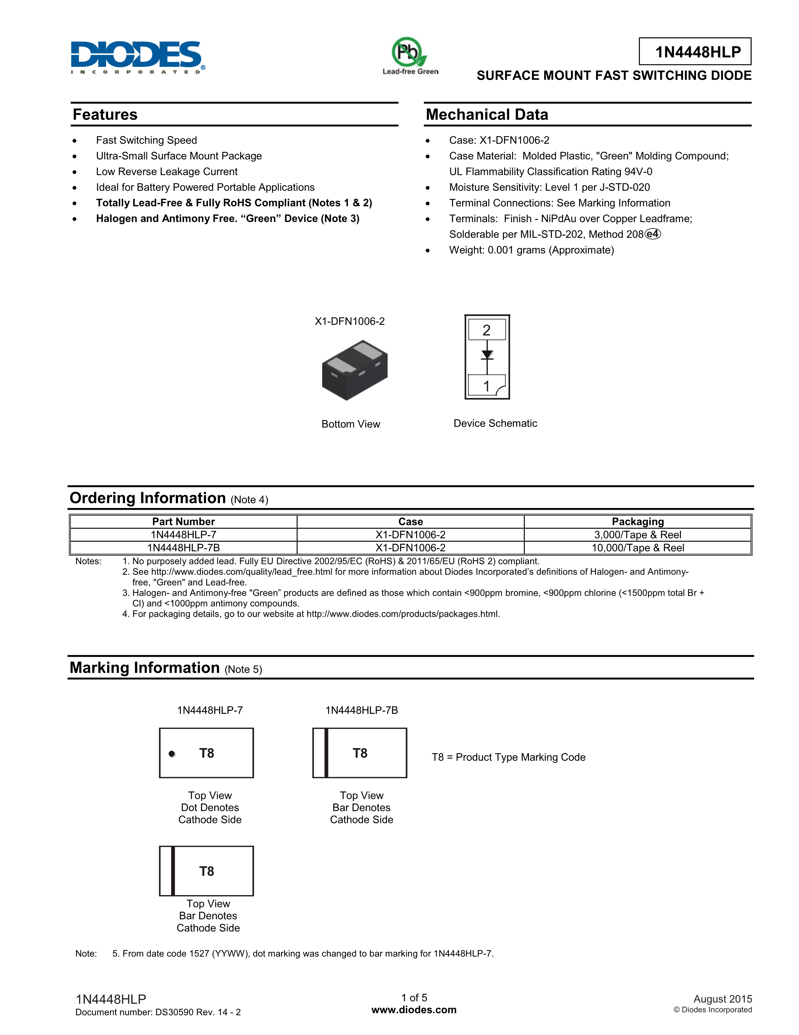 1N4448HLP-7数据手册X1-DFN1006-2封装DIODES(美台)PDF规格书,中英文下