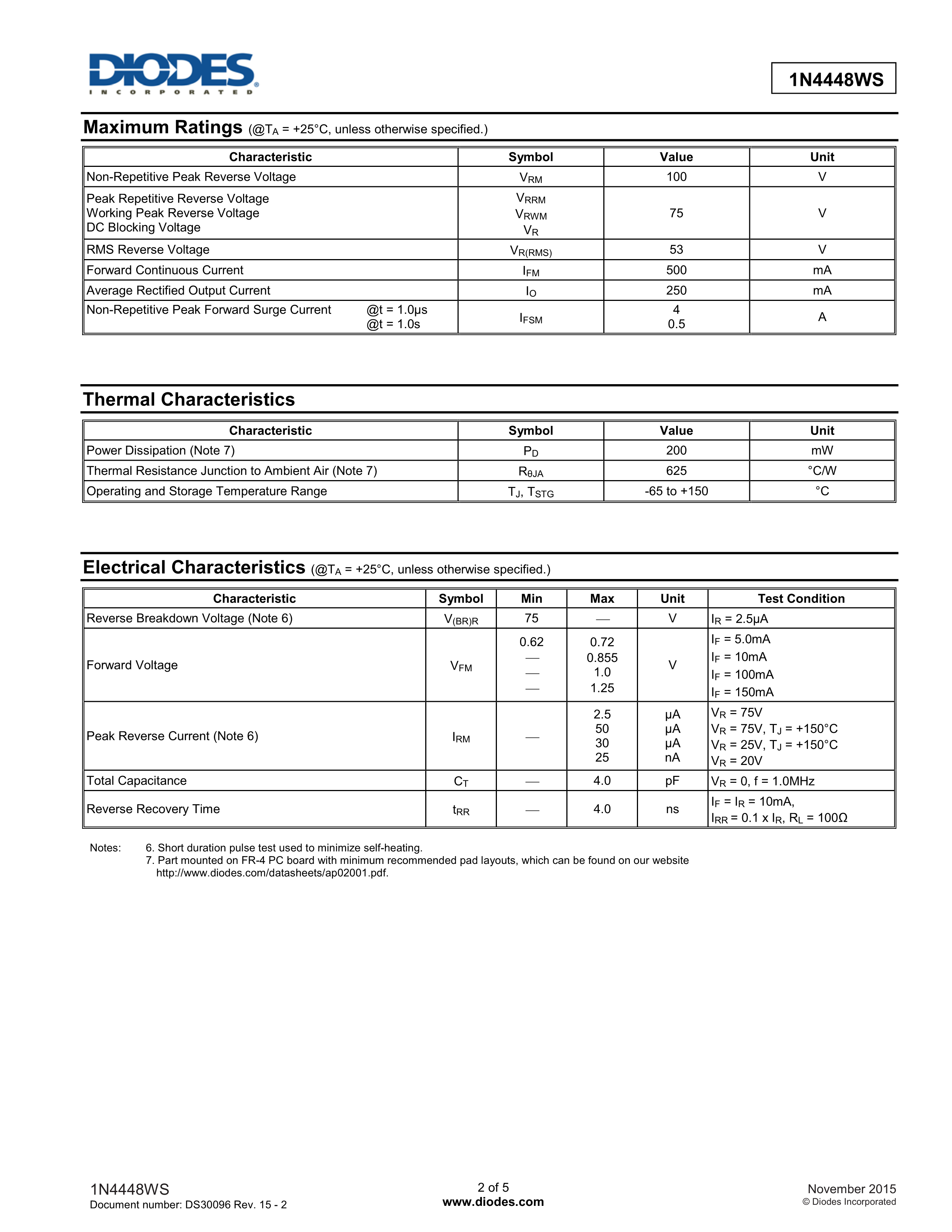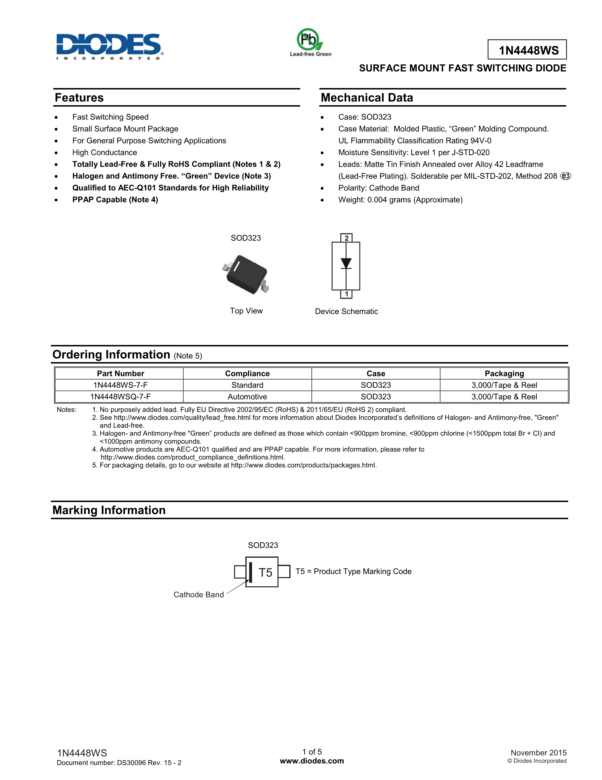 1N4448WS-7-F数据手册SOD-323封装DIODES(美台)PDF规格书,中英文下载