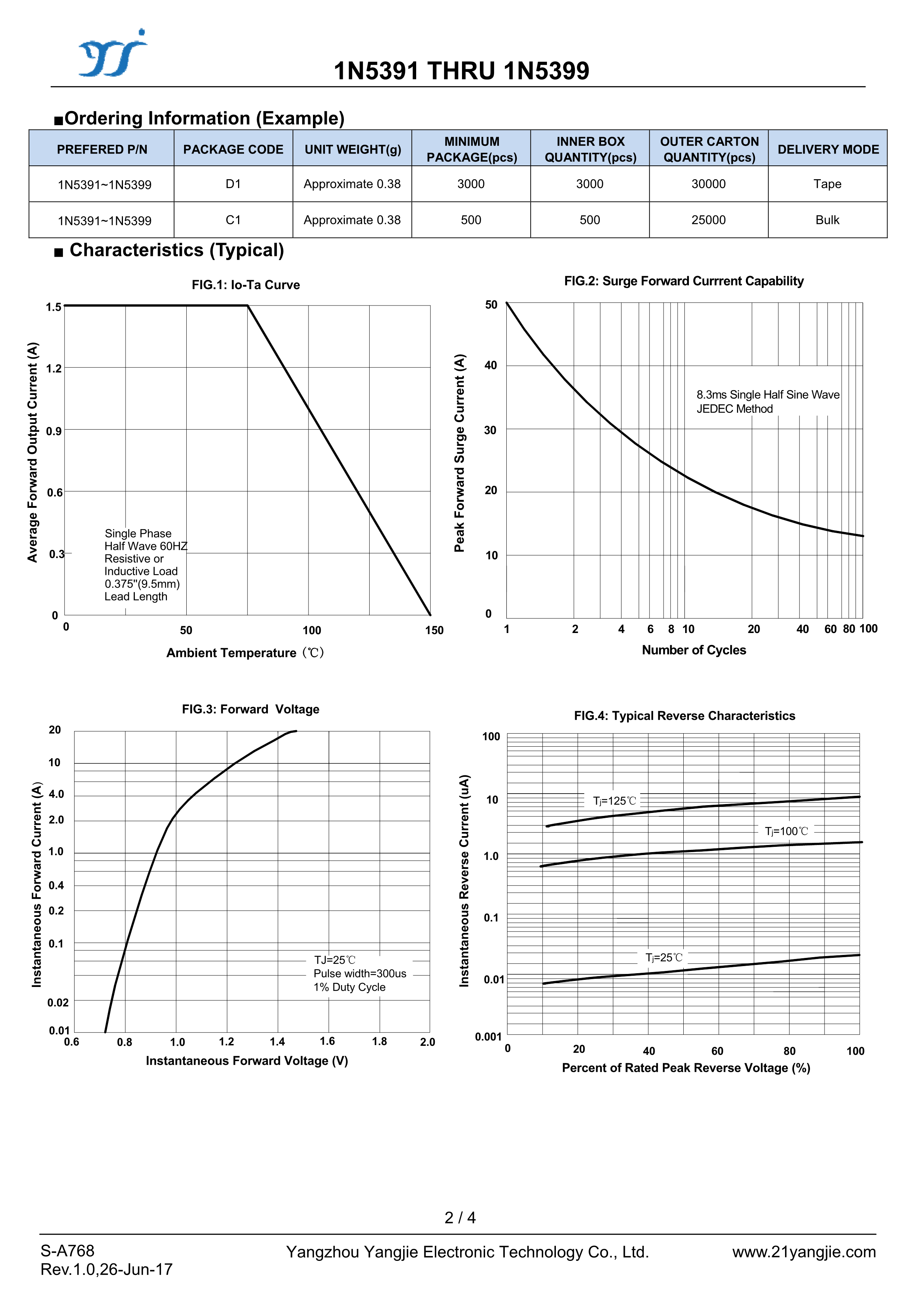 1N5399数据手册DO-15封装YANGJIE(扬杰)PDF规格书,中英文下载