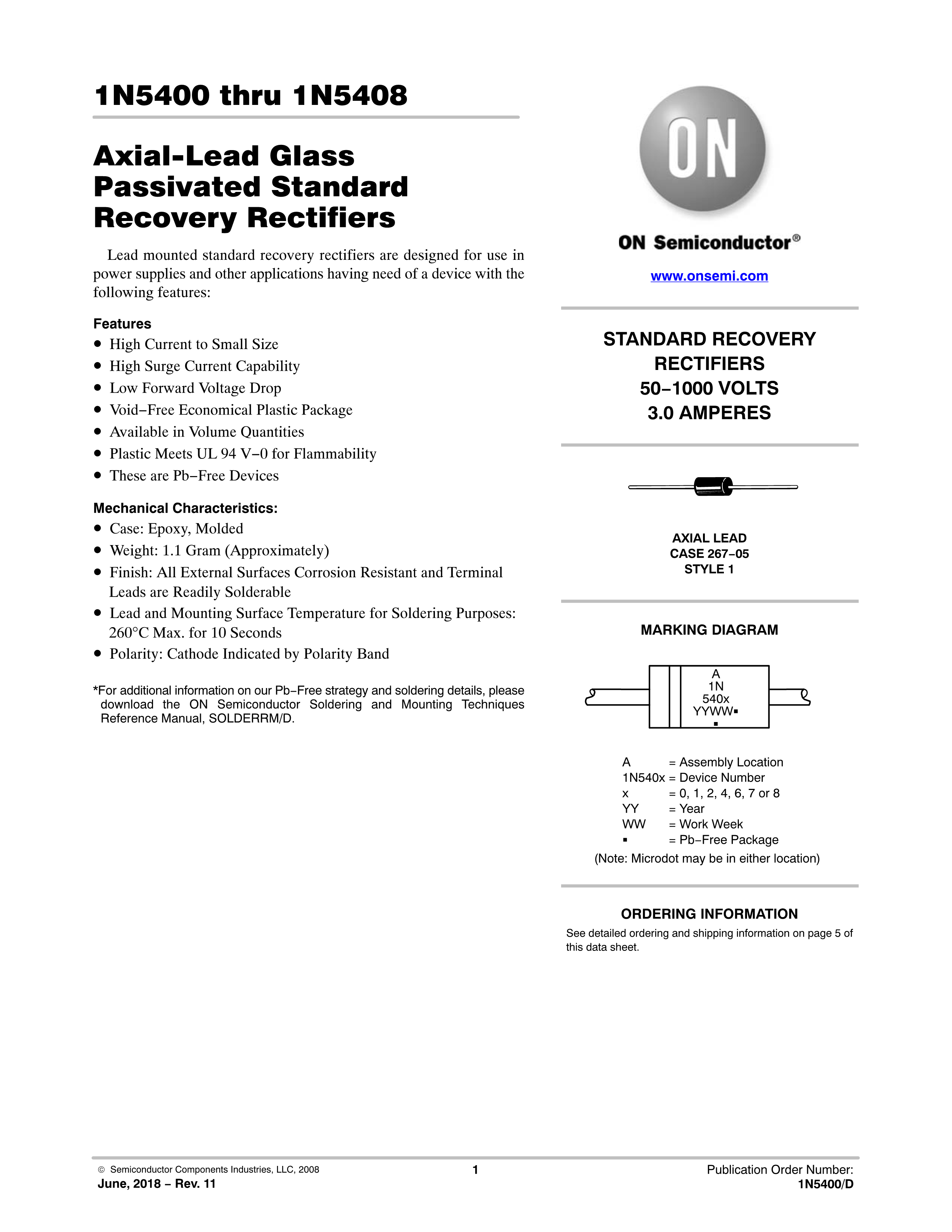 1N5401G数据手册DO-27封装onsemi(安森美)PDF规格书,中英文下载